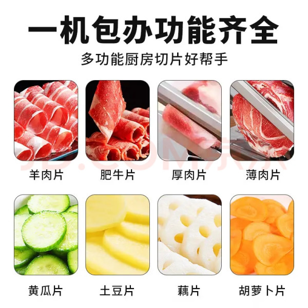 #双旦必备厨房神器 拜杰切肉片机是一款性价比较高的厨房切片工具,凭借304不锈钢材质和灵活的厚度调节获得用户认可,适合家庭制作羊肉卷、肥牛卷等食材。冬日在家吃火锅再也不怕买到不好的肉卷了!产品特点 材质规格:采用304不锈钢材质,部分型号配备270mm大铡刀,支持0.3-25mm厚度调节。 设计优势:弹簧送肉设计配合双压轴承,切割顺畅不卡顿,底部强力吸盘增强稳定性。功能配置:切片斩骨两用,支持全身水洗,配备接料盘和防护手柄。