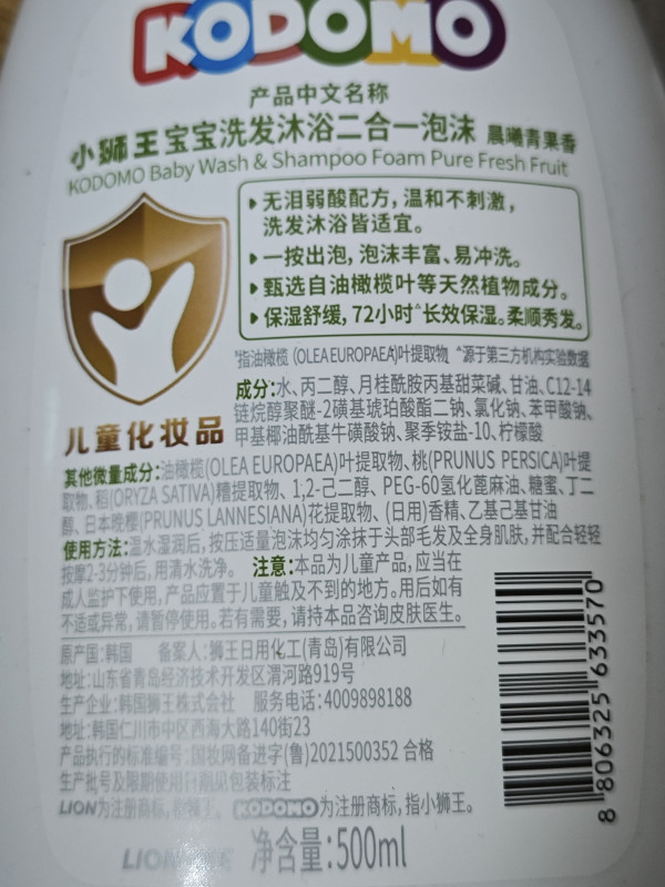 双11期间给孩子也备了一瓶狮王沐浴露,虽然孩子已经十岁了,但是还一直坚持给他使用婴幼儿产品,狮王也是老牌子了,质量和配方还是有保障的。 这款沐浴露采用是无泪弱酸配方,如果孩子洗澡的时候不小心进了眼睛里也不会刺激孩子的眼睛,压泵头的设计非常适合小孩子用,起泡效果非常好,味道带有淡淡的花果香味,闻起来让人非常舒服,而且温和不刺激,洗完后头发柔顺,皮肤光滑,孩子非常喜欢。#达人激励计划