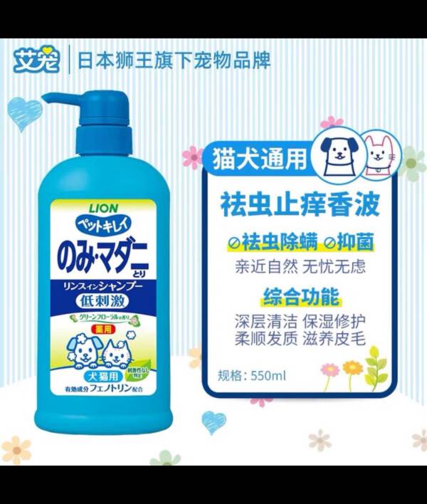 狮王艾宠沐浴露550ml,猫狗通用超省心