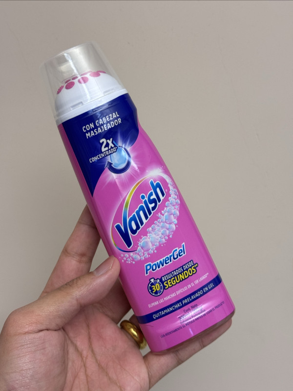 #达人激励计划 被站内安利的Vanish去渍啫喱,终于忍不住下手了,结果直接封神!娃这件绿色外套不小心蹭到了油污,试了普通洗衣液搓了半天都没用,抱着试试的心态用了它。挤在污渍处用自带的按摩头揉了揉,静置30秒再常规清洗,原本顽固的油污居然直接消失了,衣服跟新的一样,连印子都没留!它是2倍浓缩的凝胶质地,附着力很强,对付果汁、酱料、油渍这些常见污渍都超给力,而且不用费力猛搓,对衣服面料也友好。200ml的容量不大,放洗手台或者出差带都方便,喷头设计也很贴心,精准挤在污渍处不浪费。建议家里备一瓶,对付突发污渍太省心了,后悔没早点发现这个宝藏去渍神器!