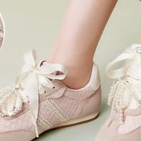 百思图2025秋季真皮百搭德训鞋拼色系带女运动休闲鞋D3556CM5 米/灰 35