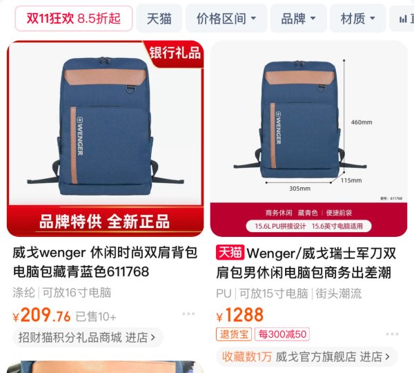 WENGER威戈的价值观是卓越品质,精益求精和杰出工艺的热爱,以及许多标志性产品(包括世界闻名的“瑞士军刀”)塑造而成的。后续WENGER威戈扩大产品范围,包括从1997年推出的腕表和从2003年推出的旅行箱包。但是上面的这些内容感觉都是针对他的高端版背包,至于值不值就见仁见智了,只是这个蓝色的基础款卖1288,我真觉得是耍猴呢….内置单独电脑存放位,包内多层合理分区及电脑仓设计,合理分配放置物品…然后…就没了,好吧,在另一个链接只要200+,所以你们觉得是耍猴吗?