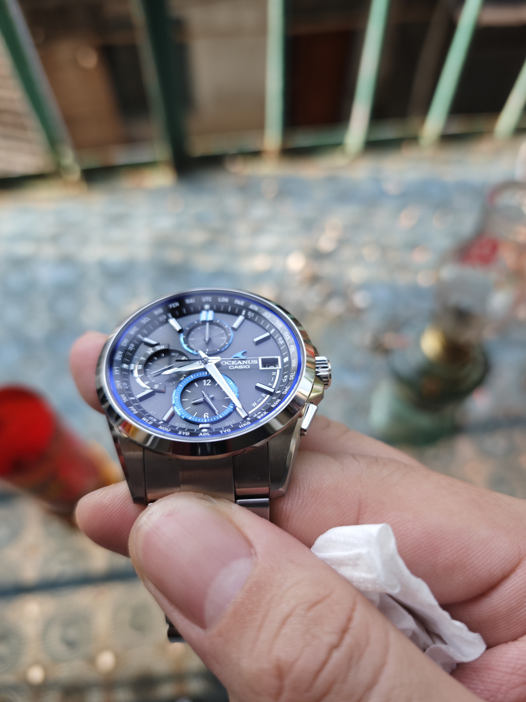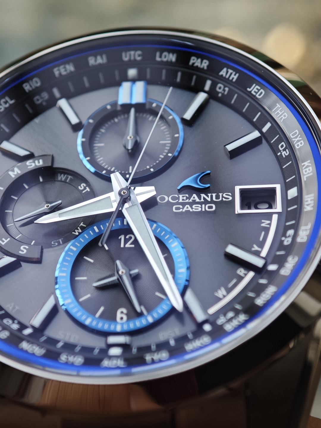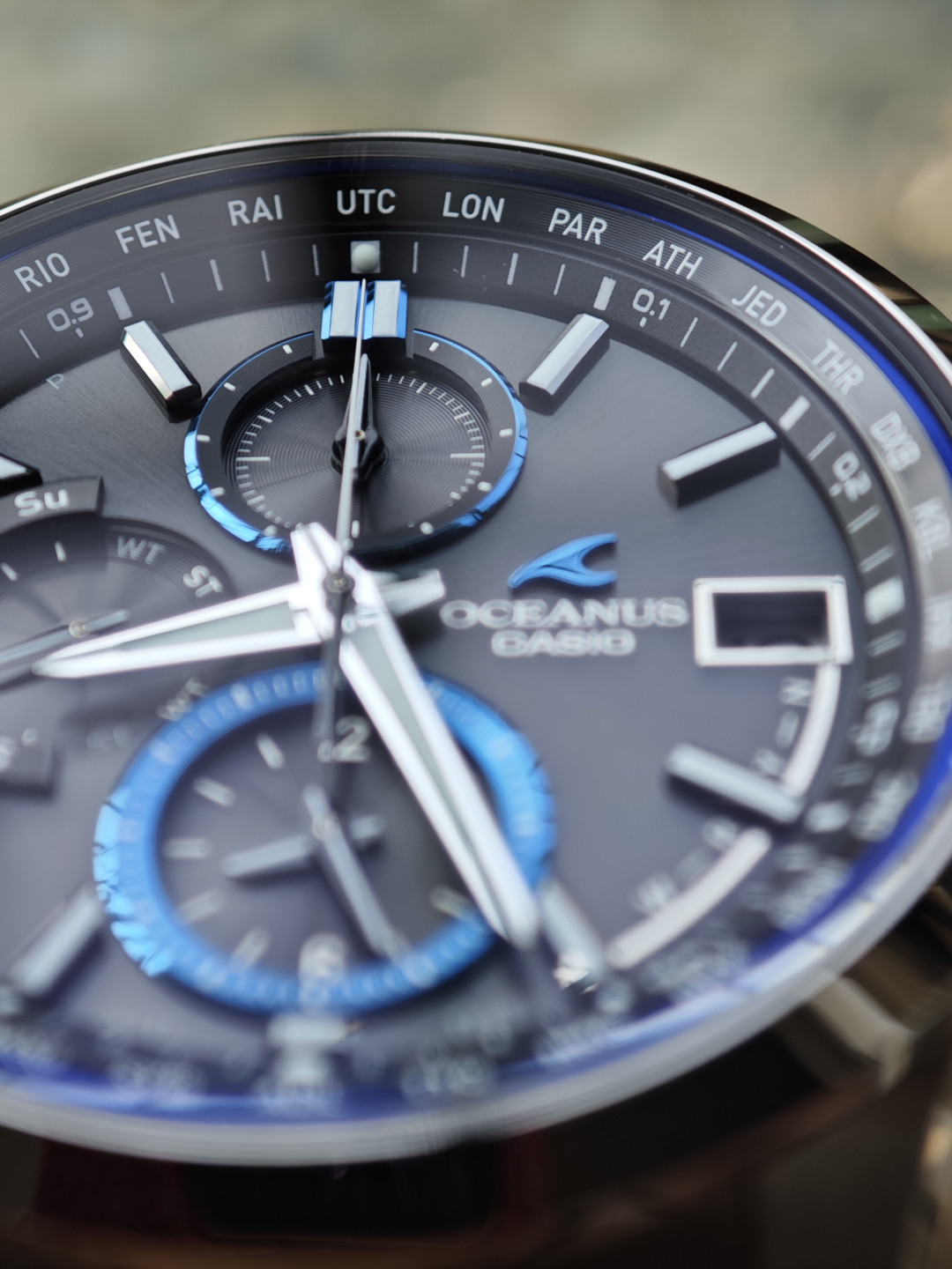#卡西欧海神的魅力 #OCEANUS经典再现 自从19年那会买了卡表的g-shock 5600 塑钢表带后,用了现在也有7年了,电池确实耐用,也确实省心,也确实耐C,带着它去钓鱼,去爬山,去露营,去旅行,去户外,各种浪😏。后面陆陆续续被站内种草海神,最近生日老婆送了块海神t2600,狗东楽天家的,到手测试收波,这种没有蓝牙,无法直接看出对波成功没,所有的电子操作都是通过表盘指针提示,确实比较反人类操作,复杂得很,好在出厂就自带多国说明书,啃了一遍也了解了大概。盘面蓝宝石的通透率99%,有时候看也确实会以为没玻璃的样子,总体来说,入门级的海神颜值抗打,虽说比不上高端的s系列,可是一部小米17的价格买一块表,也挺合适日常通勤的