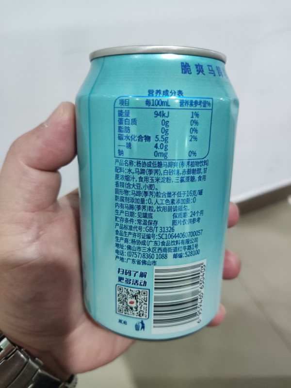 最近沉迷于狗东的临期零食专区无法自拔,见识了很多乱七八糟的零食饮料,这个马蹄爽饮料估计出了广州都没怎么有人喝过。试了一下特别清爽,入口香甜,椰子水和马蹄的清香交合在一起,还有马蹄果粒,甜甜脆脆,就像清甜之余突然冒出的惊喜,冰镇后更佳!看了一下配料表,糖分也比较低,差不多是雪碧的一半,喝起来也没太大负担。#分享618反复回购的零食