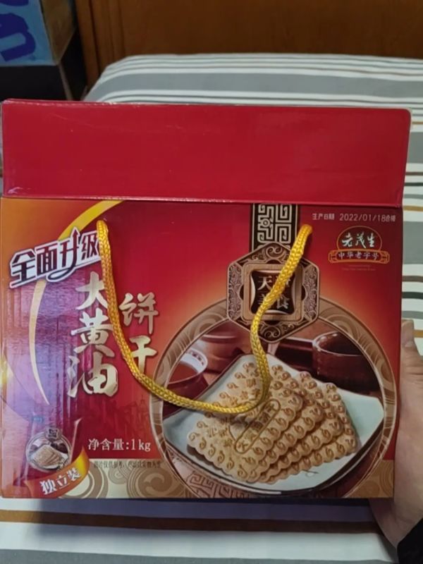 大黄油饼干超级好吃,口感酥脆,有种小时候吃过的饼干味道,分量很足满满一箱,都是独立包装,红色小袋子里面装两块饼干。香甜酥脆,入口之后一股浓浓的黄油味道,味道较甜,不过个人感觉非常好吃,家里人也很喜欢,不愧是老字号产品,真心不错,生产日期也很近,保质期十二个月,一箱二斤,一共二十包,每包两块大黄油饼干,喜欢的可以试试,反正又不贵。另外快递也很给力,头天下单,第二天送达,给你点个赞!给饼干点两个赞!!