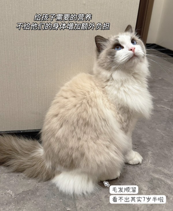 #春日养宠不踩坑 家有7岁+猫猫🐈陪伴孩子度过初老期作为从大学期间就开始养猫的铲屎官,我最大的一只猫猫今年也已经7岁半啦,换算成人类,都已经44岁啦🥹说真的看到这个孩子,就能回想起很多一起经历的点点滴滴 做家长的也希望,毛孩子陪伴我们的时间更久一点🕐但是进入七岁后也是猫咪的一个新阶段,他们的老年期也悄然到来,以前能轻松跳上的柜子,现在可能会犹豫一下,玩逗猫棒的兴致还在,但激烈追逐几个回合后,会停下来喘口气,更像是在陪我们玩 咱们在养护方面要更加用心,每年的定期体检必须到位,平时的喂养也要更换模式:进入这个阶段,猫咪的饮食结构应当更注重均衡与易消化,不宜过多投喂零食、罐头或冻干。我听从兽医的建议,逐步将主粮换成了皇家室内成猫粮(7岁+),并搭配同款湿粮一起喂养 这款粮特别针对7岁以上老年猫咪设计的,含有维生素C与丰富茶多酚,帮助对抗氧化、抵抗初老;L.I.P.高易消化蛋白与30%粗脂肪则提供充足且易吸收的能量,让猫咪保持良好体态与活力 吃这款粮一段时间后,猫咪的毛发摸起来更软滑有光泽,眼睛也依然明亮有神。每天依旧会在门口迎接我,跳上窗台的姿态也依旧轻巧 皇家是57年的大品牌了,它家老年粮全国销量也一直是第一,选择一款优质的老年猫粮,也能减少铲屎官的养护压力,7岁也属于老年初期,咱们的重点就是抗初老☺️ 如果你家猫咪是11岁以上,就可以吃皇家新出的11+老年猫粮。也希望屏幕前的毛孩子,能陪伴铲屎官更久一些