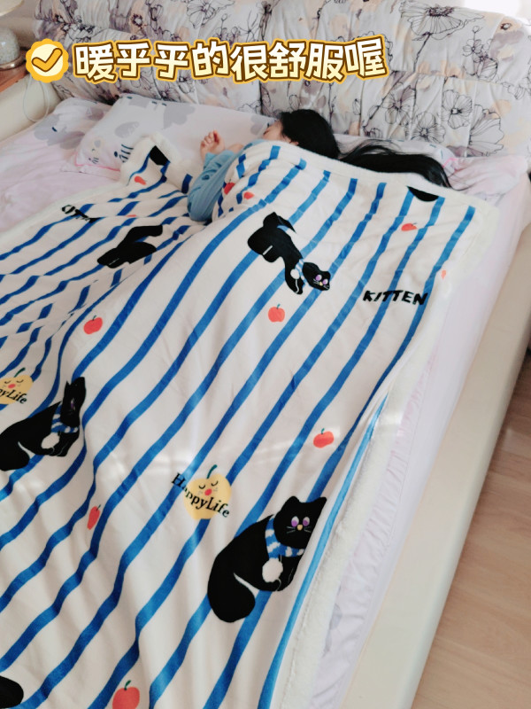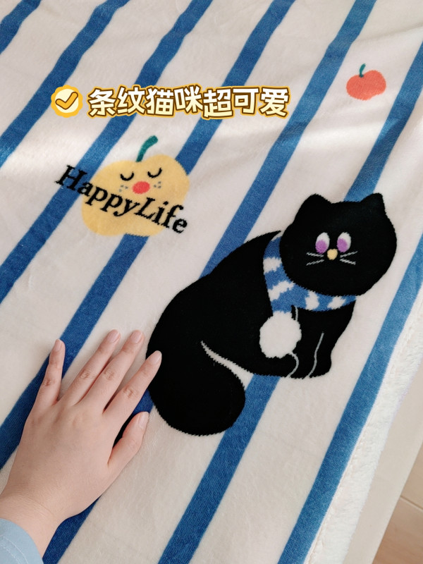 🌸入手原因春天换季气温忽冷忽热的,我们这边只要不出太阳都还挺冷的,尤其家里暖气也停了,还不能换薄毯子用,所以就比较需要有一个适合换季宅家的盖毯~找来找去,我发现这种加厚珊瑚牛奶绒毛毯不错,厚度适中,适合当成午休小被子用~.🌸商品特色我入手的这个是150x200单人毯,条纹猫款式可可爱爱的,比较小清新,搭配了猫咪苹果图案颜色也很好看,有点可爱俏皮的少女心~它一面是牛奶绒,一面是羊羔绒的,手感都好柔软亲肤呐,还不容易起球,可以机洗日常用就很方便啦~.🌸使用感受刚收到会有点浮毛,我建议洗下再用哈,小毛毯可以当成盖毯也可以披在身上,不管是躺床上玩手机还是午休都能用,细腻蓬松保暖性很好~我尤其喜欢它里层暖绒绒的料子,舒适裸睡也OK的,真的是体验感很好的床品,相当适合换季~#我家超好睡 #家居好物推荐 #分享美好生活 #好物种草官 #幸福感蹭蹭涨的家居好物