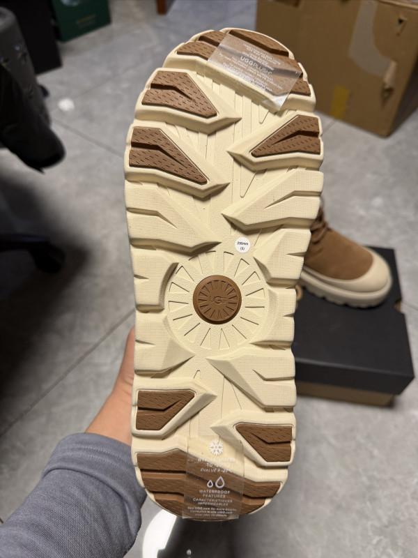 今年这款彩壳靴很火,我看很多明星都上脚了。逛街时遇到UGG店就试了一下,第一感觉就是鞋底挺软,比普通的雪地靴舒服。然后就是鞋带是弹性的,可以调节松紧,也比普通的雪地靴舒服。好几种颜色,黄色蓝色都太浮夸,只有这款白色的好看,回到家以后就在网上下单了,官方旗舰店叠加优惠比实体店便宜一些。下雪天就穿上了,很保暖,比我之前的任何鞋子都保暖,冬天再也不怕冻脚了。但是第一次穿的时候竟然有点挤脚,明明在店里试穿44码不小啊,后来我发现可能是鞋垫上面的毛太厚了,官方介绍说17毫米厚,踩一踩应该会好一点。确实,大概穿了两次以后就不感觉挤脚了。越来越舒服了。鞋面还是防水的,下大雪也不怕湿。总之,很完美的一双雪地靴。#王一博同款雪地靴 #UGG彩壳雪地靴体验