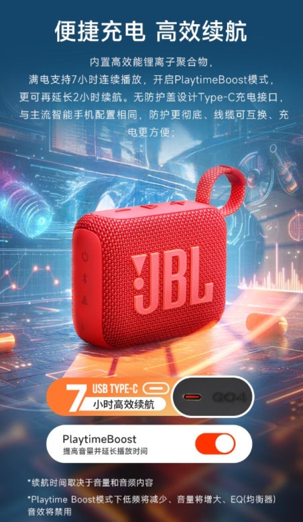 #潜力作者激励计划 说真的,如果你在找一台能随时揣走、哪儿都能扔着听的音箱,那JBL GO4绝对是“小身材大能量”的课代表。它长得就像个时髦的小铁盒,重量才194克,跟一部手机差不多沉,体积也就一块充电宝那么大。你可以随手塞进裤兜、丢进背包侧袋,甚至握在手心里,存在感低到离谱,但需要音乐的时候,它立刻就能顶上。可别因为它小就瞧不起它!肚子里那个45mm的全频喇叭加上低音振膜,出来的声音相当均衡清亮。听流行人声通透,播播客时说话字字清晰,日常刷视频、听有声书的体验比手机外放好太多了。更贴心的是,你还能用JBL的专属APP自己调EQ,喜欢低音重点还是人声亮些,随便你掰,一台小音箱能变出好几种听感。最让人安心的是它硬核的“生存能力”——IP67级别的防尘防水,基本上生活里的泼溅、下雨、沙尘对它来说都是浮云。带去浴室泡澡时放歌、厨房做饭听个响,或者户外徒步时不小心掉进草丛甚至浅水里,捡起来擦擦,照样唱歌。这种“随便造”的安心感,配上它轻巧的身板和讨喜的声音,简直是为日常通勤、公园散步、阳台发呆这种轻户外场景量身打造的。给它四颗心,是因为它精准地抓住了“极致便携”和“实用耐造”这两个核心,音质在同体积里也算能打的优等生。它可能给不了你震翻客厅的低音,但绝对是那个能轻松陪你上山下海、不添一点麻烦的靠谱小伙伴——毕竟,能随时从口袋里掏出一片音乐,本身就是件很酷的事啊。