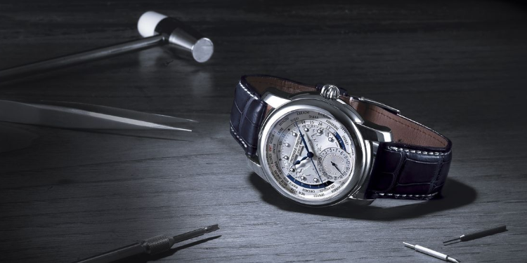 康斯登瑞士手表 立体地球纹世界时夜光背透自动机械表男表 FC-718N4NH6B