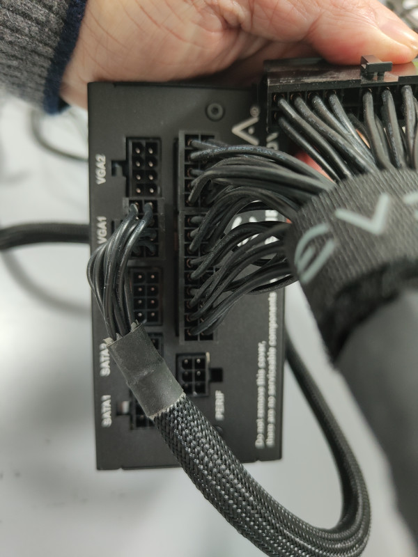 给测试台架配的小电源,图省事买了evga的模组化小金牌电脑电源,额定功率号称650w不过体积小巧轻便,模组设计所以用不着的线也不用连一堆,用起来比较好使。实测电源输出电压稳定,12v带几块板子轻松的很,稍有点大材小用的感觉。