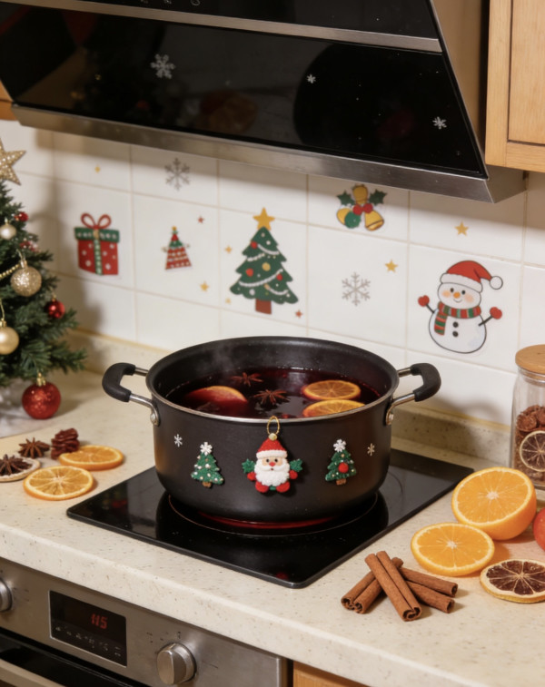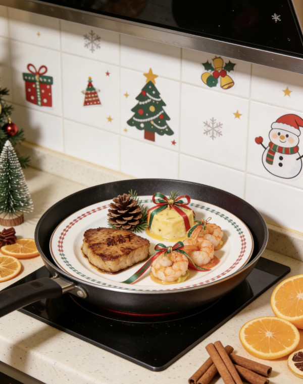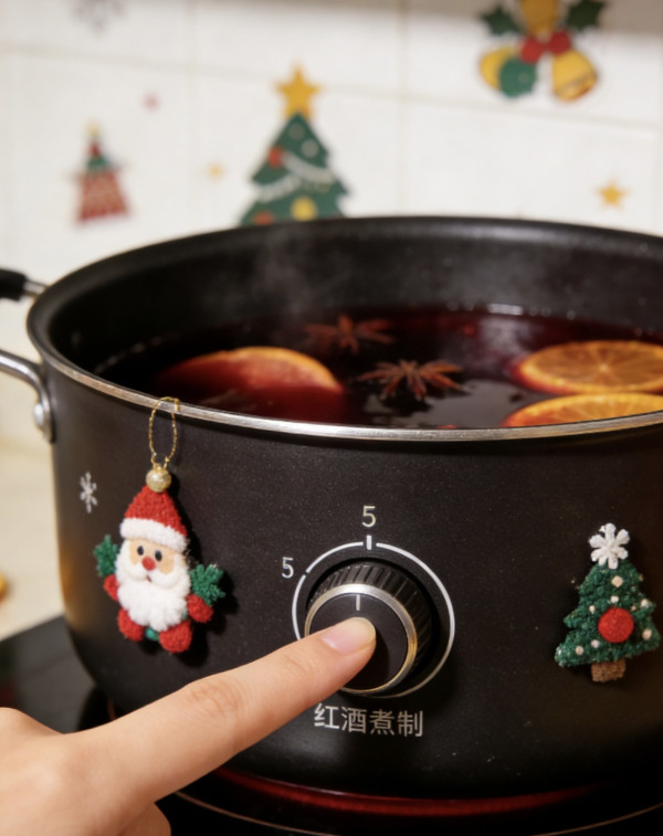 #双旦必备厨房神器 双旦在家办家宴,用摩飞多功能料理锅直接省了3个锅具!🍲深锅盘煮圣诞热红酒,煎烤盘做香煎法式鹅肝,丸子盘烤芝士虾球,连圣诞树根蛋糕的饼底都能用电饼铛盘烙出来。5档温控精准控火,新手也不会糊锅,聚餐结束拆洗配件超方便,往厨房台面上一摆,圣诞氛围直接拉满~1. 场景实拍图:料理锅摆在贴有圣诞贴纸的厨房台面,深锅盘里煮着热红酒,旁边放着肉桂棒、橙子片等食材,锅体贴有圣诞小装饰;2. 菜品成品图:用料理锅做出的热红酒、香煎鹅肝、芝士虾球等圣诞菜品拼盘,摆盘里加入圣诞松果、彩带点缀;3. 细节实测图:料理锅的5档温控旋钮特写,手指指向“红酒煮制”档位,背景是正在工作的料理锅。