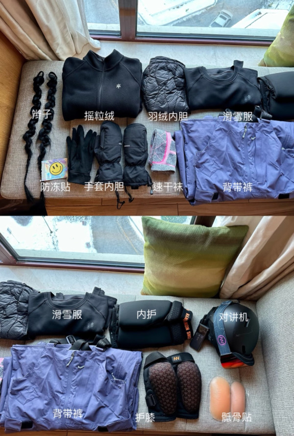 #潜力作者激励计划 雪场穿搭既要实用又要出片,这套黑紫配色方案直接抄作业!雪服选了背带裤款,鲜亮撞色在雪地里超显眼,朋友一眼就能找到,拍照更是氛围感拉满。头盔和雪镜挑了GIRO黑亚洲版搭配紫粉镭射款,和雪服完美呼应;新手入门的装备性价比拉满,PRIME/LILKINGS全能单板硬度5,黑白涂鸦配色百搭又便宜,搭配TERROR快穿系统雪鞋和固定器,穿脱超省心。 细节装备更是保命又贴心!新手必入硅胶护骶骨神器,亲测摔跤不疼,稳稳护住关键部位;夜滑或怕冷的雪友,内搭可以叠穿速干衣+羽绒小马甲+摇粒绒,锁温效果一流。触屏内胆手套是刚需,掏出手机拍照再也不用挨冻;小米对讲机必须安利,和雪友沟通无障碍,不用在寒风里掏手机。造型感也没落下,假发辫子告别雪场“卤蛋头”,防冻贴护住脸蛋不泛红,头戴式护脸带齿设计不滑落,鼻梁专属剪裁超人性化。