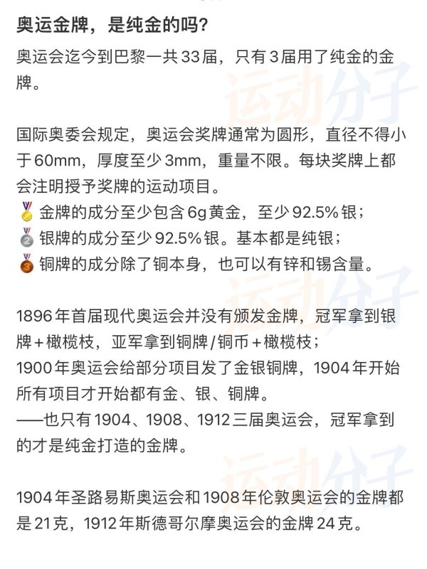 之前已经介绍过奥运金牌的含金量(图2),巴黎奥运会奖牌的制作过程(图3)。巴黎奥运会金牌总重529克,其中黄金6克,来自埃菲尔铁塔替换的原铁重量18克,剩余重量为纯银,505g。之前法国媒体评估金牌的成本价值大概为950欧,约7420元人民币。目前白银克价约7.4元,金价约560元,金银部分合计7100元。埃菲尔铁塔的铁无法估计价格、也买不到。加上铁块和加工包装等费用,总体上和法媒估算的价格接近。毕竟今年巴黎奥运会的奖牌是由珠宝品牌尚美巴黎(CHAUMET)设计——当年拿破仑和约瑟芬的最爱,也是当时的御用珠宝商。约瑟芬的皇后冠冕、拿破仑的加冕之剑都是chaumet制作的——所以奥运奖牌的价格再偏高一些,也算合理。奖牌的盒子也是尚美的蓝色盒子。奥运会奖牌的总重量和尺寸基本上一直在增加,2008北京的金镶玉重量为244.5克,2012伦敦的金牌400克,2016里约500克,2021年东京造了有史以来最重的金牌,556克,2024巴黎稍微轻了些,也有529克。当然其中价值最高的黄金一直是按奥运会规定的6克来,所以差在银的那部分重量,还有制作加工的费用。至于为什么不用更多的黄金?对组委会而言这徒增成本,满足要求即可。当年伦敦奥运会号称是史上成本最高的金牌之一,成本约为780美金,算下来不到当时6000人民币。东京奥运会的金牌成本当时约5000元人民币。中间金属价格啊汇率啊一直在波动,这些也都很大影响了金牌的成本。