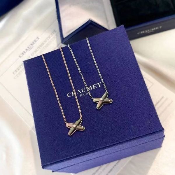 尚美 Liens 结缘系列 21年新款 灰贝贝 交叉单钻项链 原版定制进口s925纯银材质电镀18k厚金 经典火爆著作 超精工!!推荐指数最高 铂金 玫瑰金两色