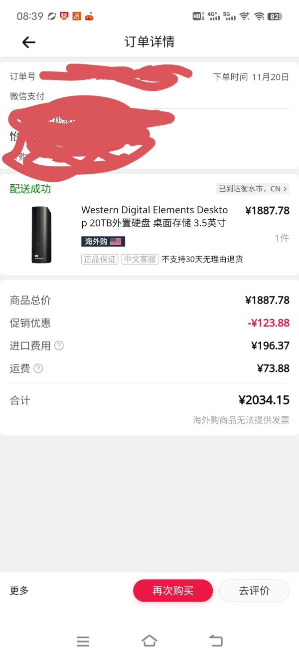 之前买的亚马逊硬盘20扫描有坏道,和亚马逊交流很方便,高效!两三天就解决问题!告诉大家流程!由于亚马逊没有电话,有的电话打不通!所以需要在app上沟通,在商品那没有退款选项,需要点帮助,帮助里面商品退货,再在下面选帮助,输入你的手机号,立刻亚马逊就打电话来了,把问题说明,然后把单号和问题写邮件,附加照片和视频,发送就行!审核通过,把商品邮寄到北京退货部,需要注意,附加一张纸,写明单号和原因,放在包裹里。上午收到货,中午就安排了退款!两天就解决问题了,速度非常快,可惜了我的20tb硬盘,只能退不能换!