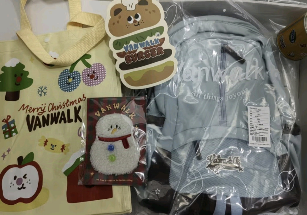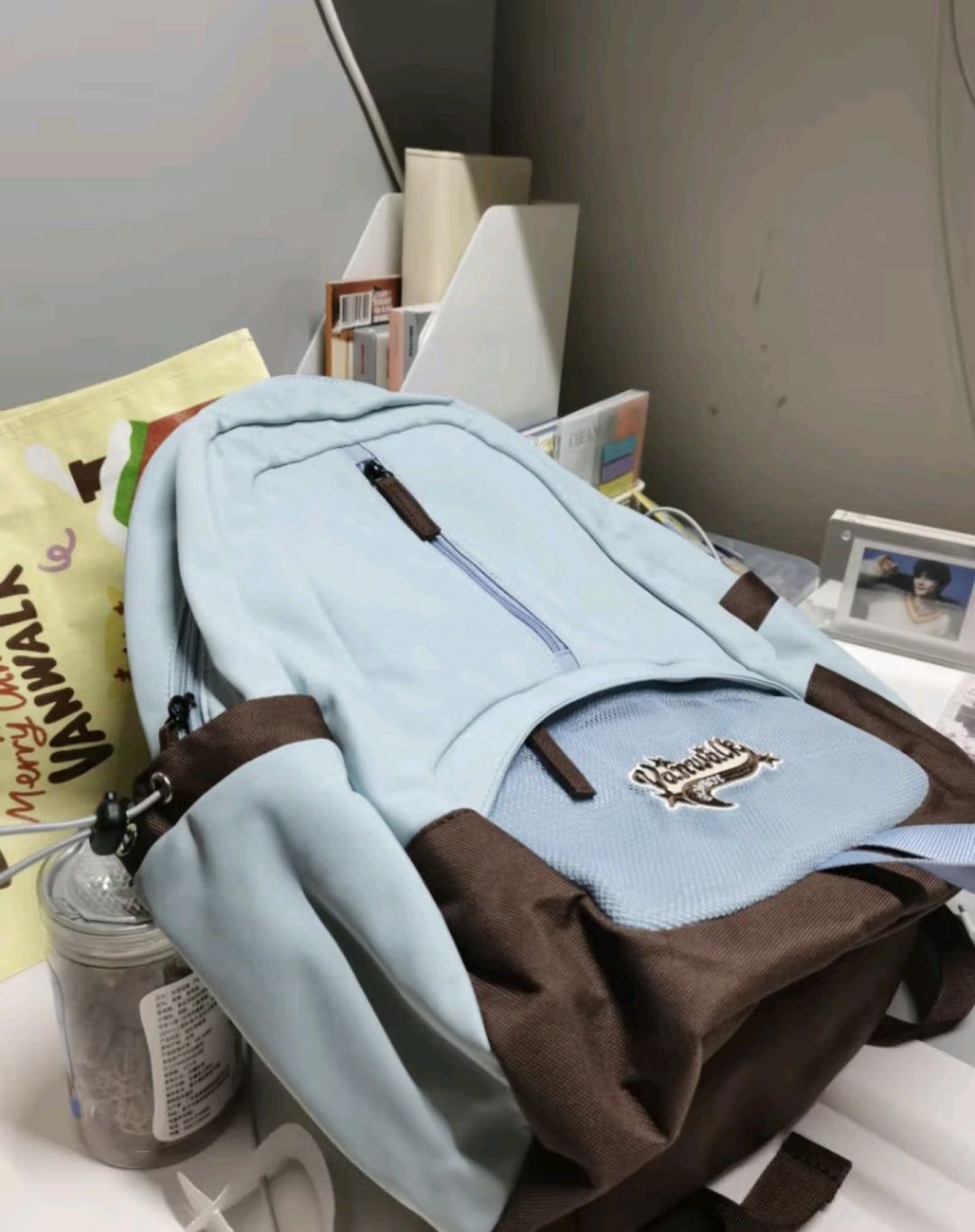 一点色差也没有我真的狂喜!蓝色➕绿色原来也是神仙组合,撞色设计真的元气满满~大小口袋很多,只能说vanwalk的书包实用性很高.送的挂件和小手提包都好可爱~书包上还能 挂很多好看的挂件神仙赠品系列!
