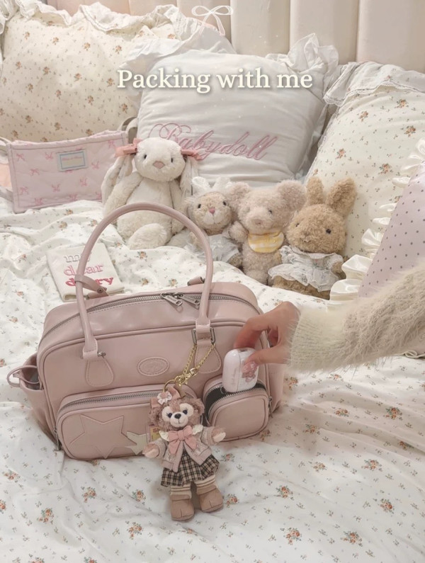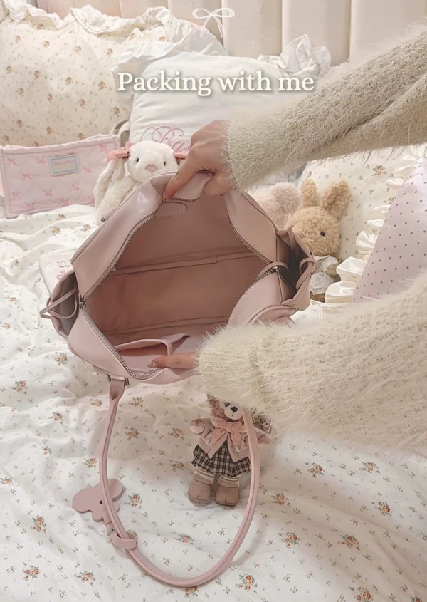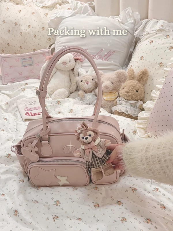 VANWALK野餐系列 波士顿包包女大容量通勤手提单肩枕头托特包 白桃粉