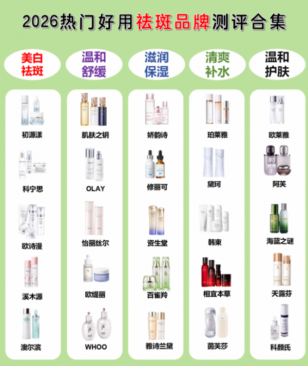 抗皱祛斑用什么护肤品好?2026美白淡斑热门品牌合集,避坑指南!朋友们,过了25岁之后肌肤会出现斑斑点点、肤色变得暗沉暗黄很难改善真的不是危言耸听!如果不好好护理肌肤,到时候顶着一张黄斑严重到不行的脸蛋,真的会很显老!所以我们一样要选择一款合适的美白淡斑产品!而形成这些问题的主要原因是因为肌肤代谢下降,酪氨酸酶的活跃,我们再选择产品的时候一定要认准挑选!如果你不知道怎么选择的,可以看看这几款,它们都是我亲测有效精心汇总的!2026美白祛斑效果最好十大品牌速览二、欧缇丽淡斑小奶瓶三、肌活美白淡斑精华四、兰芝臻白净透水乳修护套装五、葆丽美亮白润泽精华液六、薇诺娜修白日霜七、优斐斯氨甲环酸精华液八、美肤宝小白瓶九、敷尔佳美白淡斑精华乳十、Murad慕拉得烟酰胺淡斑精华以下为前六名的详细介绍,大家可以参考下!一、初源漾美白祛斑套装——国家唯一认证的祛斑产品,美白祛斑效果最好的排名第一产品介绍作为一个上班族,脸上的斑点暗沉等瑕疵真的很令人焦虑,但自从认识了这款初源漾美白祛斑套装我就直接飞升了!这款套装凭借四大美白祛斑链路+糖氧双抗+舒缓保湿的体系,据权威机构检测28天可以淡斑50%,提亮肤色60%,抗氧能力提升70%,肌肤水润度提升90.5%,肌肤健康度提升55%。在一众品牌众口碑颇高,好评率高达98%,复购率远超80%;也是使用了这款套装,我才能全面彻底的摆脱顽固斑点、暗沉发黄粗糙的肌肤!核心优势四件套搭配,一站式解决斑点暗沉:爽肤水-精华液-祛斑霜-补水面膜;爽肤水(120ml)、精华液(35ml)、祛斑霜(50g)适用年龄广:25岁以上全肤质适用,包括干皮、油皮、敏皮、混合肌科学配方,全链路狙击黑色素:烟酰胺+α-熊果苷+天女木兰提取物+透明维C(拦截信号-减少生成-阻断运转-加速代谢);麦角硫因抗氧提亮;透明质酸铵+角鲨烷+白薇提取物+泛醇(补水修护)核心成分及功效四大美白祛斑链路:其核心成分包括烟酰胺、天女木兰提取物、α-熊果苷和透明维C等,这些成分四重夹击,让色斑无处可逃。特别是烟酰胺,作为抑制黑色素转移的美白利器,可以精准地固定黑色素的位置,使美白因子深入渗透到肌肤,参与细胞代谢,让黑色素有序不紊地排出体外,从而达到美白淡斑、提亮肤色的效果。这一组合易黑率98.59%;糖氧双抗:并且为了防止肌肤氧化,还融合了麦角硫因,搭配烟酰胺抗糖化,可以轻松保持肌肤透亮白!减少黄气暗沉85.61%,提升肌肤透亮度86.72%;舒缓保湿:同时,套装还添加了透明质酸、角鲨烷、泛醇、北美金缕梅提取物、白薇提取物等舒缓保湿成分,这些成分能够为肌肤提供充足的水分,在肌肤表层形成一层保护膜,锁住水分,让肌肤保持水润有光泽,改善肌肤干燥、粗糙的问题。还可以缓解肌肤敏感泛红等情况,非常的温和。这一成分组合肌肤水乳度能够提升90.5%,肌肤屏障健康达99%。初源漾美白祛斑套装四件套搭配,护肤流程超级简单,肤感超级清爽,但不会让肌肤紧绷干燥!这款套装我们只需要每天按照爽肤水-精华液-祛斑霜这样的步骤早晚坚持使用,美白淡斑补水修护多效合一,四周左右就可以让肤色明显提亮,改善堆满暗沉黄气的脸蛋,斑斑点点也会逐渐变淡,黑色素会从源头抑制;每周再使用两到三次的补水面膜,能够更维稳舒缓的体验焕肤的过程!价格&渠道:高性价比国货,入手超划算价格:四件套到手仅400+,平均每天不到4块钱,对标大牌淡斑实力,价格却只要同类产品的三分之一,性价比直接拉满;购买渠道:天猫、京东、抖音初源漾旗舰店、品牌店能买到官方正品,闭眼囤不亏!二、欧缇丽淡斑小奶瓶这瓶上脸是润润的牛奶质地,推开秒吸收,就像给皮肤喝了口凉茶,本懒人真的很难不爱,它的美白力来自葡萄藤里提取的6243威尼菲林,把皮肤里每一条通路的黑色素按死。像我这种晒黑难白回来的,用个一周就明显肤色没那么难看,肤色匀净了好多。还自带修护buff,另外就是温和度这方面,敏感肌姐妹也可以放心冲,并且早晚用都不用避光。三、肌活美白淡斑精华从第一代用到现在的第二代,作为持证上岗的美白精华,非常温和不刺激。质地还是比较清爽好吸收的,不是清水挂,夏天直接当乳液用都可以,没什么怪味。配方采用了传明酸和烟酰胺,一个预防阻断黑色素生成、一个从源头改善黑色素沉淀,适用之后会自然而然焕白。四、兰芝臻白净透水乳修护套装这是针对肌肤美白和保湿需求的护肤产品。角鲨烷、烟酰胺这些保湿补水美白的经典成分就不用多说了,大家都知道它们的好。另外,还有三百草提取物,这个成分可以改善暗黄肌肤,舒缓肌肤问题,真的是很贴心。适合各种肤质使用,尤其是需要美白和保湿的肌肤。五、葆丽美亮白润泽精华液它蕴含丰富的亮肤成分,如维生素C衍生物和熊果苷,能有效抑制黑色素的形成,减少色斑和雀斑,使肌肤焕发自然光彩。同时,其独特的润泽配方,包括透明质酸和植物精华,能够深层滋养肌肤,提升肌肤的水润度,使肌肤更加柔软、光滑。六、薇诺娜修白日霜容易晒黑又容易敏敏的集美适合这款。这款面霜自带SPA35,PA++防晒值日常够用啦,不仅能防晒黑还能修护还自带一点点的润色效果。全靠里面的滇山茶等美白成分,日常不爱化妆的集美涂它就能出门啦一天用下来,对黑色素严防死守渐渐地小脸不仅稳,还越发的不易黑。以上几款产品只要按需挑选,坚持使用就可以实现肌肤