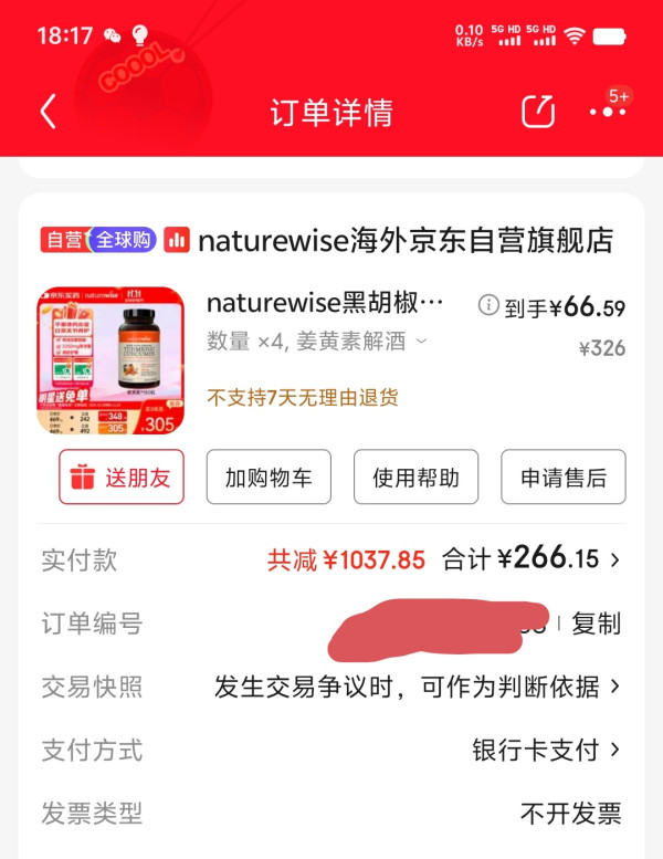 经常在B站看北美运动学博士Bruce的视频,看到他对姜黄素的推荐指数很高,就准备买来试试,在大妈上搜索以往的爆料,发现近期最低的价格是180多。在京东加入购物车观望了一段时间,突然发现买三瓶的话,单瓶只需要170多,就毫不犹豫的下了一单,当天晚上,无意中又看了一下,商品页面上又弹出一个优惠券,使用后价格远低于之前下单的价格,赶紧将之前那单退掉,重新下单,发现买四件的话,单品只要60多,不知道是不是bug。当时本来想爆料了,但是优惠券非常复杂,而且我根本不知道这些优惠券是什么时候领的和从哪领的,只能作罢。