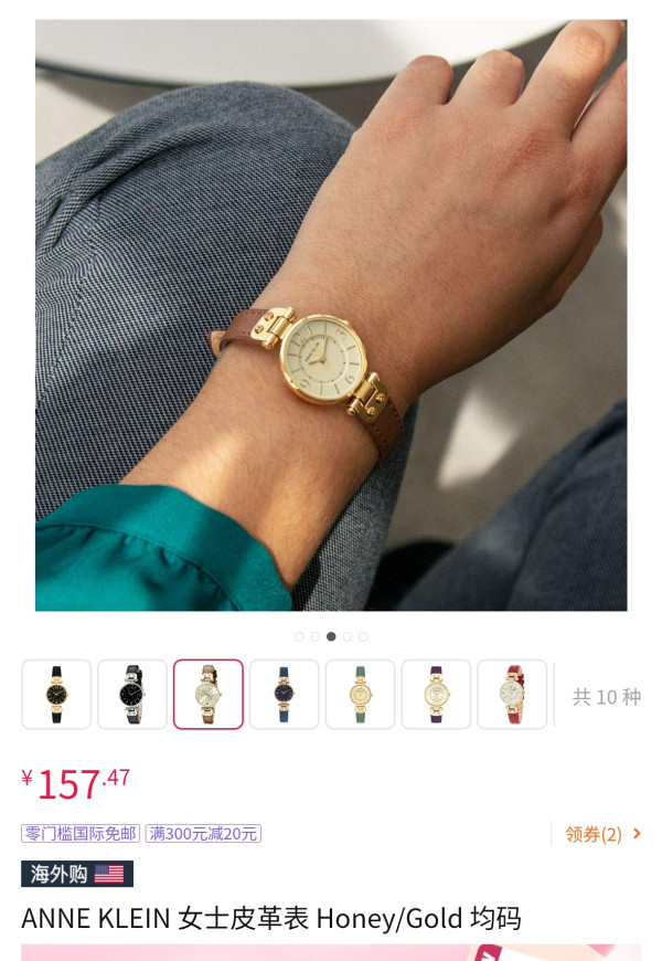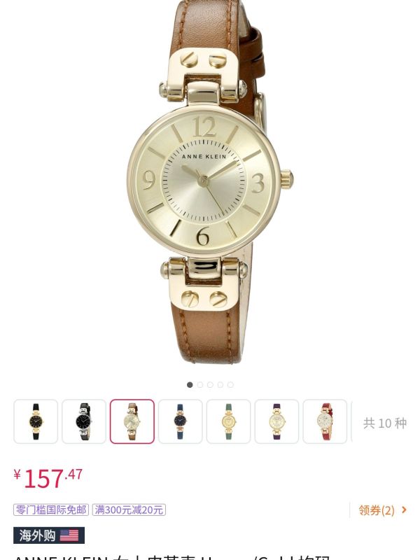打工人速囤!Anne Klein这款26mm石英表今天杀到157元史低价,比同款其他配色省30元+,一杯奶茶钱就能拿下美国设计师牌子的轻奢配饰!✨ 黄油色表盘配金针,浅棕皮带镶金圈,戴上手瞬间提亮通勤衬衫的沉闷感,开会时抬腕就是低调高级的复古范。日本石英机芯走时精准到秒,30米防水洗手喷香水都不怕,小牛皮表带软到像戴了条温莎结。趁亚马逊库存还没被抢光,闭眼冲这块春夏穿搭刚需表,157元买不了吃亏但能买来一整季的职场高光!超低一百多!美国轻奢级设计师品牌Anne Klein,又开始巨折热卖。复古百搭,职场穿搭必备亮眼腕表ANNE KLEIN 安妮·克莱因 简约经典系列 26毫米石英腕表 10-9442CHHY
