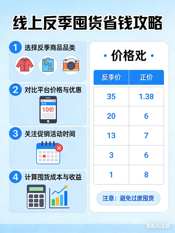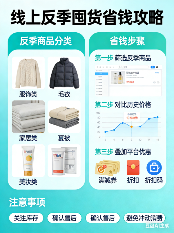 线上反季囤货是低成本购入高品质商品的秘诀,尤其适合服饰、家居、鞋包类物品。夏季囤羽绒服、毛衣,冬季囤短袖、凉鞋,反季商品线上价格通常是当季的2-3折,品牌官方店、奥莱线上专区的反季款,质量与当季款一致,无残次问题。囤货优先选经典基础款,避开潮流款,避免过季过时,同时查看商品保质期、材质耐用度,服饰类选百搭款式,可穿多年。控制囤货数量,只囤刚需款,不盲目大量采购,避免占用资金和空间。线上反季专场、清仓专区定期上新,定时浏览捡漏,用极低价格拿下品牌好物,比当季购买省出大半开支,性价比远超日常购物。#省钱主理人