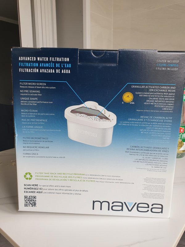 最近租房,发现水质有点硬,新的烧水壶积累了不少水垢,看了大妈推荐碧然德,很久之前家里拿来了一个,用不到出了闲鱼。根据爆料买了149的一壶三芯版本,结果发货地上海迟迟发不出,无奈刚需之好退了,找了好几家,看了一些帖子,说碧然德很混乱,然后某平台看见了一眼假的,虽说这壶没啥含量,但是滤芯买到盗版感觉也挺要命的,后来逛海鲜市场发现有个叫mavea的滤水壶,看上去和碧然德很像,然后查了下发现是碧然德在北美的品牌,各个平台上比较少,感觉可以在一定程度上避开仿制品,这个壶款式就是elemaris XL,其实感觉没海洋和光汐好,壶盖向下开,感觉容易进灰,壶身倒是蛮好看的,和碧然德一个名字,壶和滤芯是德国造的,字的细节也比较精确,感觉应该是正品,滤芯打开有不少小的碳颗粒,浸泡洗了10min,然后滤了两次,烧了壶水试了下,感觉有些改善,看看后面会不会结水垢吧,滤芯在公众号搞了一颗9.9的专家版,到618再屯点。这个东西总体上还是很满意的,价格也并不便宜,对于大家的爆料来说,就只求没买到假货