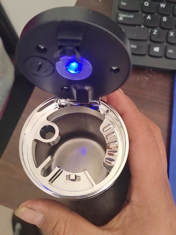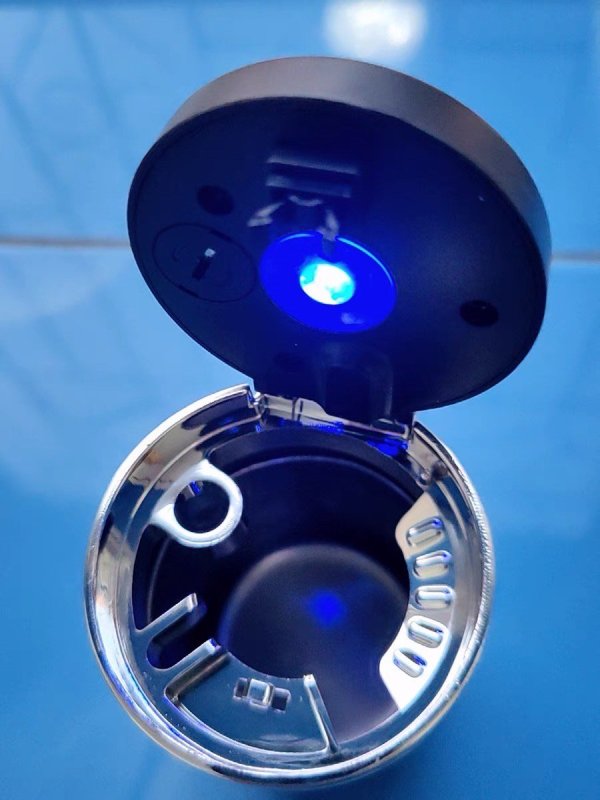 这个烟灰缸是真的不错,其实我买来不是放在车上的,朋友经常来家里组团玩游戏,所以特意买来给他准备的,本来就是车载的烟灰缸,也放在车上试了试,效果还是可以的。整体评价:烟灰缸大小合适,密封性很好,不锈钢内胆烟头扔进去盖上就行,很方便!!!使用体验:打开盖子还有LED亮灯,有事情要是不抽烟还可以放在里面的烟架上,虽然东西不大,考虑的还是很周全的。安装情况:如果车子有水杯架,直接放进去就可以了,太大了就只能是垫点东西了,不然会来回晃的。做工形式:还不错吧,外壳塑料开模还算精细,基本没有什么开模的痕迹。产品材质:塑料外壳,不锈钢内胆虽然东西不错,还是善意来一句,烟能少抽就少抽,没好处的。