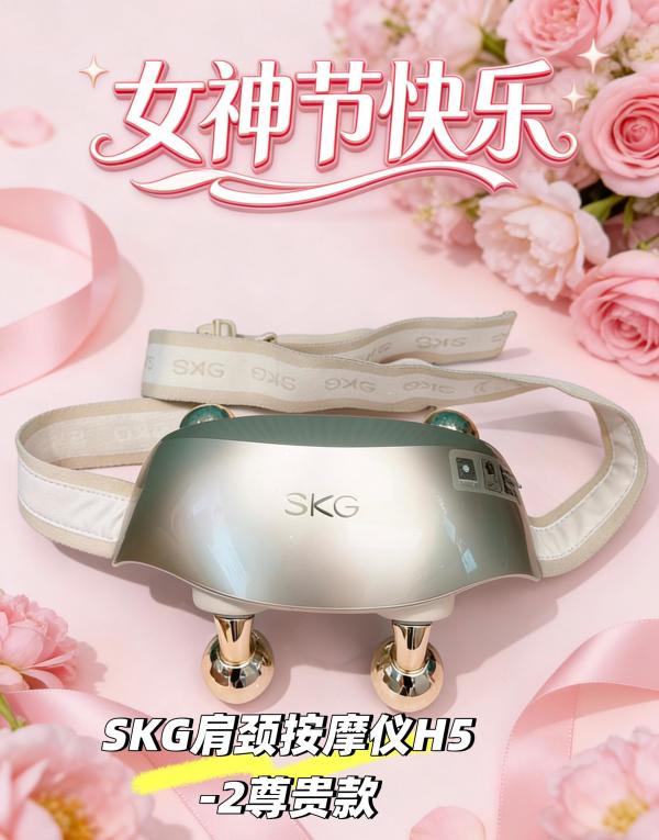 #这份礼物很懂她 爱自己是终身浪漫的开始,三八女神节的惊喜,不如自己给自己安排!职场打工人天天久坐敲电脑、低头赶方案,肩颈僵得像块石头,出去做次按摩三百多还费时间,不如入这款SKG肩颈按摩仪H5-2,把私人按摩师揣进包里,随时随地都能放松~ 这款按摩仪真的太贴合打工人的需求了,便携卡扣设计一披就稳,机身轻巧完全不压肩,办公室戴、居家追剧戴都没存在感。晶钻滚揉按摩头超贴心,360°贴合颈部曲线,斜方肌、大椎穴这些酸胀重灾区都能照顾到,揉按起来力道刚刚好,就像专业师傅的手在温柔揉捏,再搭配红光热敷,温热感能渗进肌肉里,几分钟就让紧绷的肩颈舒展开来,酸胀感瞬间消失。 还是王一博同款,颜值和实力双在线,每天午休15分钟戴一戴,不用出门不用折腾,就能给自己的肩颈充个电。比起那些摆一次就闲置的礼物,这种能实实在在缓解疲惫、守护日常舒适的好物,才是最走心的宠爱。 工作再忙也别亏待自己,38节给自己安排上这款SKG肩颈按摩仪,把松弛和舒服还给自己,做永远轻松自在的自己,这才是女神该有的样子~