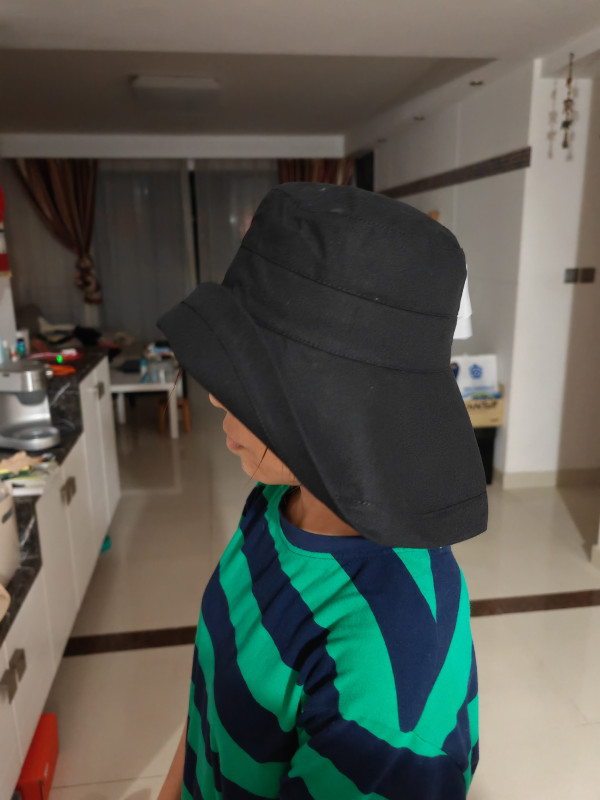 乘双十一有活动赶紧备货,原因是国庆出门旅游把帽子给弄丢了。这次买的帽子帽檐更大,遮阳效果应该会更好,但是就怕风大把帽子给吹掉,所以必须要一个系绳。面料基本上都是聚酯纤维,也不知道大热天的会不会很闷热?好在价格便宜,一次买了俩,两种颜色换着戴。