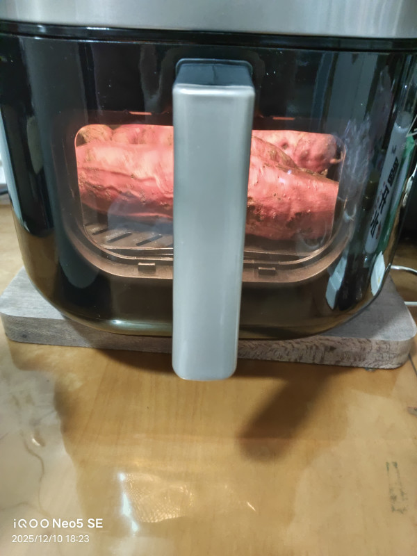 #双12囤货指南 闭眼入不踩坑 这款美的空气炸锅,双热源加热更均匀无需翻面,金属抗菌内胆,顶部过滤网安装拆卸清洗方便,透明的视窗,可以随时观看里面食物的状态,八个菜单加上解冻键和复热键基本满足日常所需。收到货当天就烤了地瓜,直接用菜单键的数据烤出来就不错,温度,时间可以根据自己所选的地瓜大小调。早市买了我们本地的小油栗子,小油栗子用板栗刀切割之后,直接放里面烤的,脱壳效果不错,很甜就是稍微有点硬,这回买的这个小油栗子不像板栗刚上市的季节买的板栗水分那么大,买回来泡一泡水就好了。这款空气炸锅的不沾涂层效果也不错,烤完之后,非顽固油渍挤一点洗洁精,用温水泡一会,冲洗一下就可以了。这个店铺今天双12首购礼金又加了,返的红包也从20变成30了,价格算起来比前几天要便宜了。#双热源烤出美味 #可视窗设计亮点 #免翻面烹饪神器