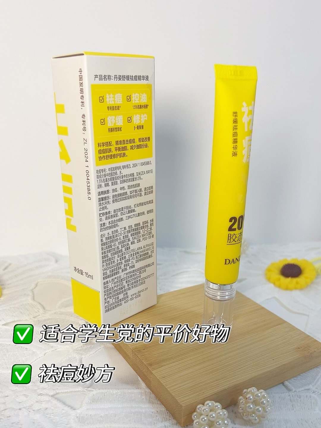 🙋Hi各位友友大家好呀!今天分享的是来自丹姿品牌的祛痘精华液。😝我身边的朋友都知道,我虽然皮肤比较好不怎么长痘痘,有时候长痘痘的话我就是会长那种看起来比较大的痘痘,痘印也是比较难去除的。我的皮肤是属于那种敏感肌的类型,对于一些普通的祛痘的产品我是不太去使用的,我觉得敏感肌适用的产品比较挑剔。当我用了这品牌的东西之后觉得挺好用的,祛痘效果比较快,这款祛痘精华液,去改善痘痘瘪豆还是很厉害的👍。😚它的配方靠谱,没有随意添加一些防腐剂香精色素等等,含有20%的专利胶态硫,1.5%包裹的水杨酸,还能在1小时内舒缓褪红。质地细腻温和。散发的香味也是一种淡淡的葡萄香味,丹姿祛痘精华液主打着修护,祛痘,控油等。😛使用方法操作起来非常简单只需拧开盖子挤出来涂在脸上的一些痘印或者是痘痘长出来的地方取适量涂好就行了。(使用前记得清洗好干净。🤩说在最后:丹姿的这款祛痘精华液,可以有祛痘快速瘪痘痘的功能,修复修护痘痘的印记,去除痘印后的皮肤像初生蛋蛋的光滑细嫩,一支15ml可以用挺久的了,我感觉也是非常适合夏天容易长痘痘皮肤痘印问题的宝宝。🌟推荐指数:⭐⭐⭐⭐⭐🌟推荐指数:⭐⭐⭐⭐⭐#品牌种草训练营
