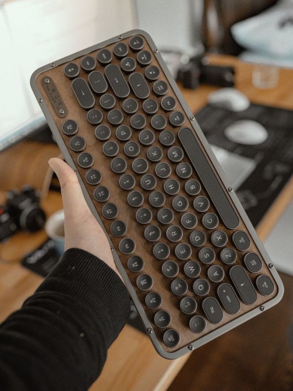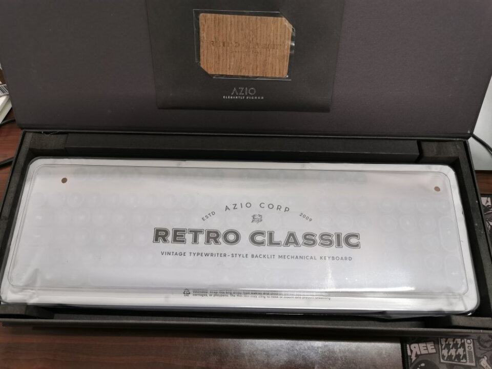 外观外形:AZIO的这款木质键盘,一眼就被吸引了, 真是有调性了,放在办公室,谁来了忍不住多看两眼。并不是全键盘布局,很紧凑,质感很好,圆形键帽也很好看,就像一款工艺品。产品质量:这东西,主要看外观,质量不好说,应该还行。键盘本身是木制的,加上金属边框,其他部分为塑料。使用体验:键轴是Gateron Brown,敲起来脆脆的,感觉有点松松垮垮哈。配套的有一个手掌垫,也是木头的,这个垫子质量很高。反面也有印字加上防滑垫。还送了一张保修卡,这张保修卡很有意思,是一片木头做的,很精致。最后送了一个刷子,这就迷惑了,刷子是扫灰吗。
