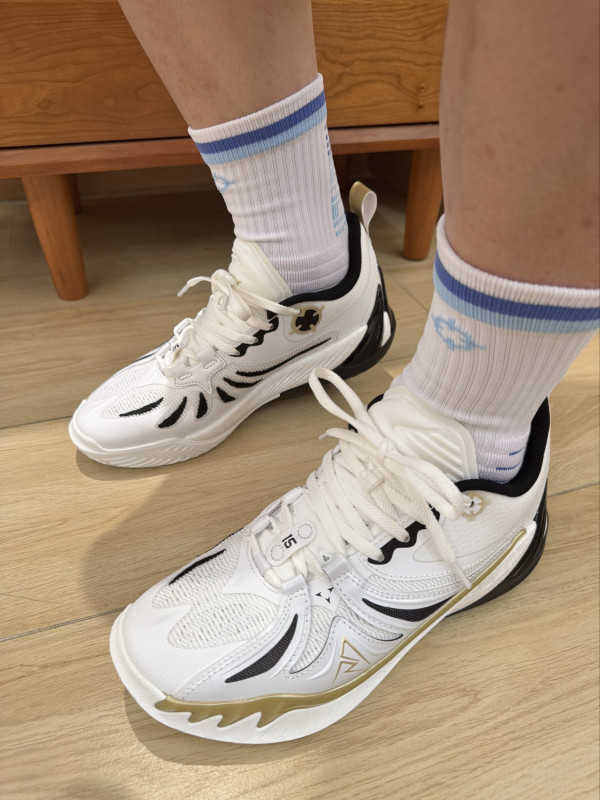 #AR3多面测评团 #三步轻袭挑战 #球场逆袭时刻 #准者里弗斯三代 #球鞋真心话 #潜力作者激励计划 经过3代产品的迭代升级,球星款终于走上正轨AR3从颜值上已经甩了国内二线品牌好几条街配置上紧跟李宁安踏,鞋面质感不错工厂做工细节有提升,车缝线工整后跟黑色部分再精致一点点堪称完美球员鞋垫高低差目测考验脚型,待后续评测颜值配色适合大众球场穿搭。