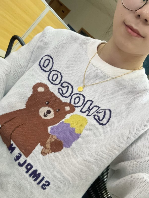 这一款是CHOCOOLATE家的针织衫。衣服以其甜美风格为特色,设计上融入了小熊嵌花图案,增添了趣味与活泼感。整体超级有质感,也不会担心起球!洗了多次也没变形。很适合广东的天气,外穿就很好看!如果天冷,内搭也超级不错哦~今天还穿去爬山了,不错~
