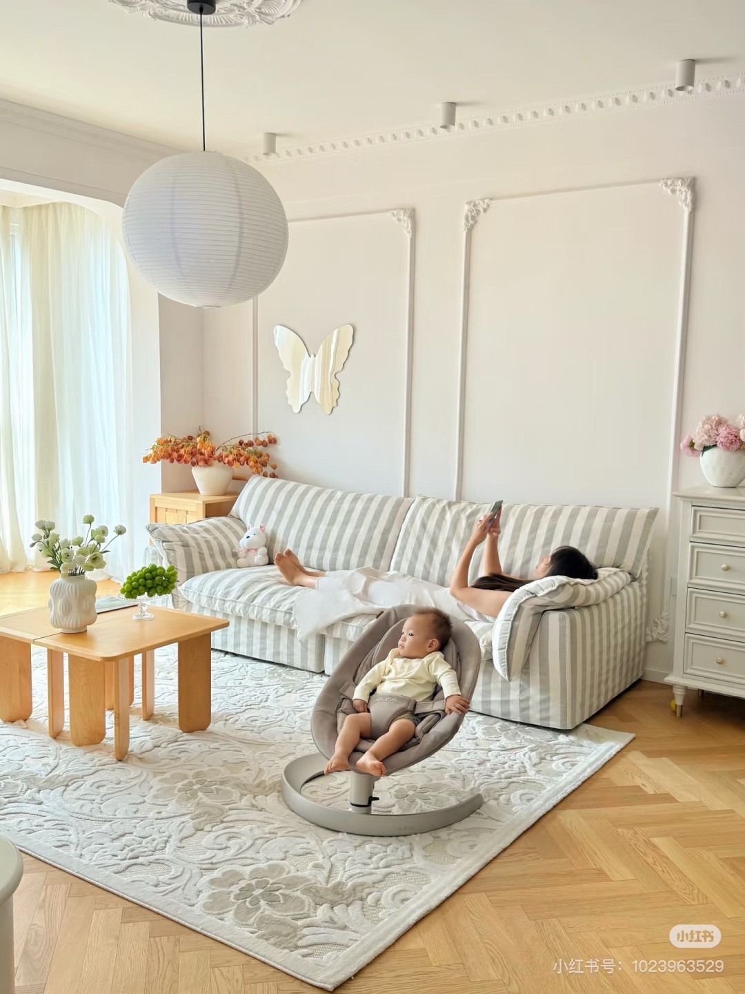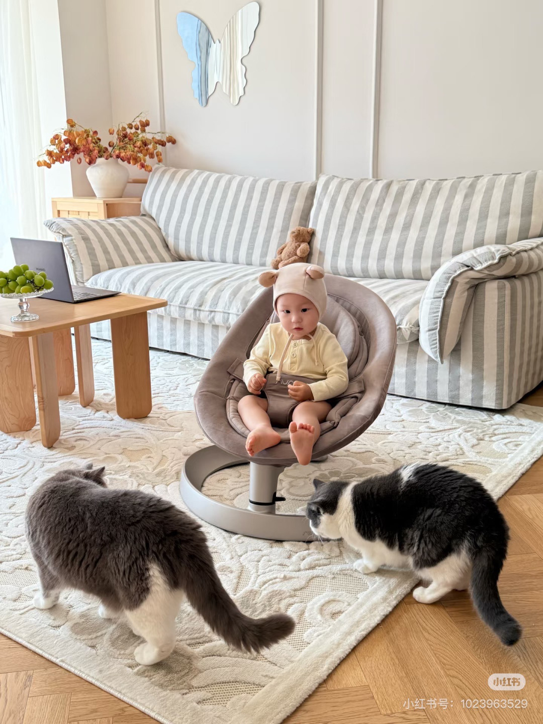 #晒双11宝藏母婴好物 自从有了娃,是不是感觉自己像个24小时待机的“人形摇篮”?🤱哄睡、拍嗝、陪玩……连上个厕所都要冲刺跑?别问我怎么知道的,问就是亲身经历! 直到我家队友入手了这款Nuna LEAF grow莉芙摇椅我才真正体会到什么叫“科技解放双手,带娃也有松弛感”!它不像传统电动摇椅需要插电,完全没有机械噪音和辐射困扰轻轻一推,就能自然摇摆2分钟,模拟妈妈怀抱的节奏和幅度宝宝躺进去秒变“天使宝宝”,有时候自己摇着摇着就睡着了💤我终于能安心吃口热饭、追半集剧了(感动哭)! 三档调节➕超大承重,是真的能从小用到大!一档,哄睡宝宝,解放双手;二档,自带玩具条互动,启蒙认知发育;三档,更方便喝奶、吃辅食甚至等娃大了还能当亲子椅、读书椅,我经常跟他“抢”着坐(承重60kg稳得很)~面料是那种有机棉的,摸起来软软糯糯,透气不闷汗重点是——整个布套都能拆洗!吐奶、辅食渍都不怕,直接丢洗衣机洗就轻松搞定👍 颜值还超高,简约设计摆哪儿都好看不愧是拿过德国红点设计大奖🏆现在我在客厅收拾,就把摇椅挪到旁边,宝宝自己躺里面摇摇晃晃,不哭不闹还能看风景~真正的“带娃轻松一小时”,谁用谁知道!