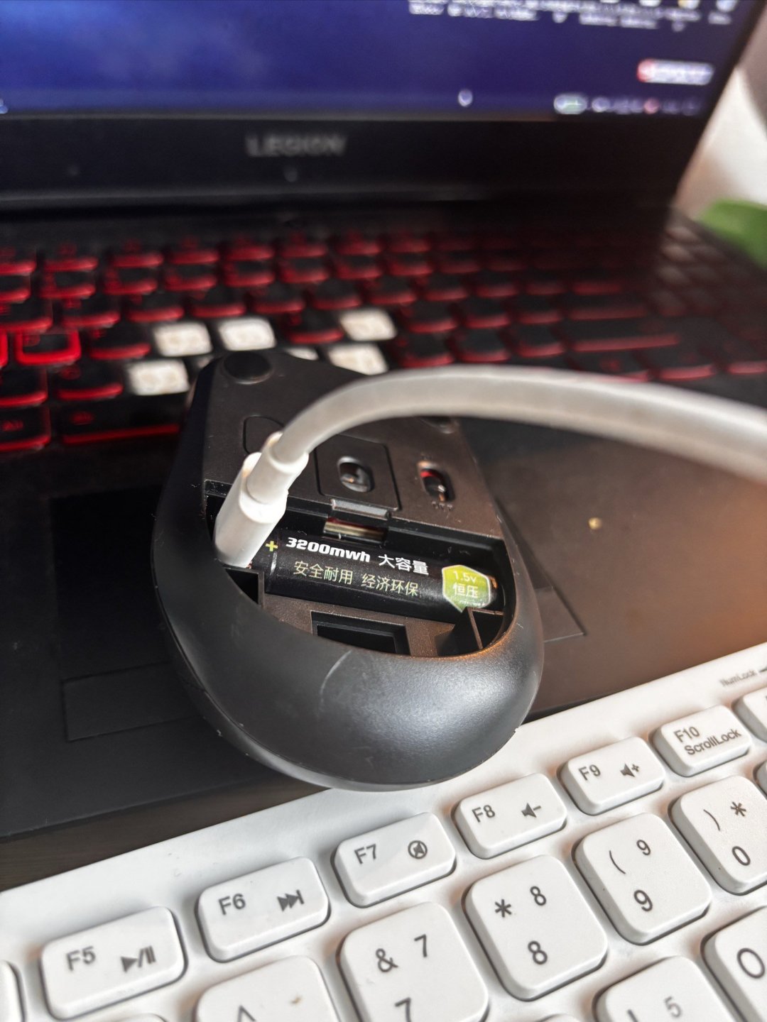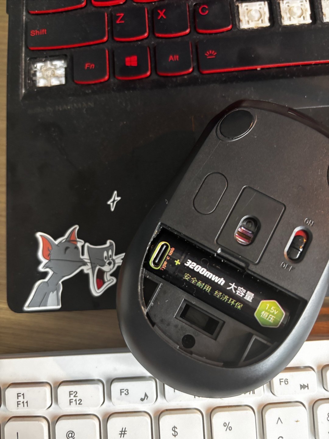 内置电池的无线鼠标随着电池循环次数增多,寿命会有损耗。而采用外接电池的方案,又会有电池半夜加班突然没电的焦虑。强烈推荐我使用了这种自带usb.C充电接口的5号电池方案。这个电池稍微贵一点,价格接近10元,对比几块钱只能到2400这个达到了3200的大容量。注意是毫瓦时,而不是毫安时。相比传统的充电干电池,这个最方便的是可以一根type c充电线就搞定,同样也支持了手机充电宝。省去了印象中大块头充电器,甚至是多带一根线的繁琐。打开鼠标的电池盖插上充电。同时较大的容量保证了充满一次电能用很多天,我甚至已经不记得上一次充电是什么时候了,反正每次过了很久,想到了就给他充一会儿。即使电池突然报废,也可以很方便地找到普通电池替代。不仅是鼠标,类似智能门锁时钟遥控器等需要电池的地方也能很方便。