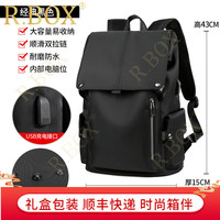 R.BOX轻奢品牌男士双肩包男书包简约大容量牛津布旅行背包双肩背包旅行 黑色1950