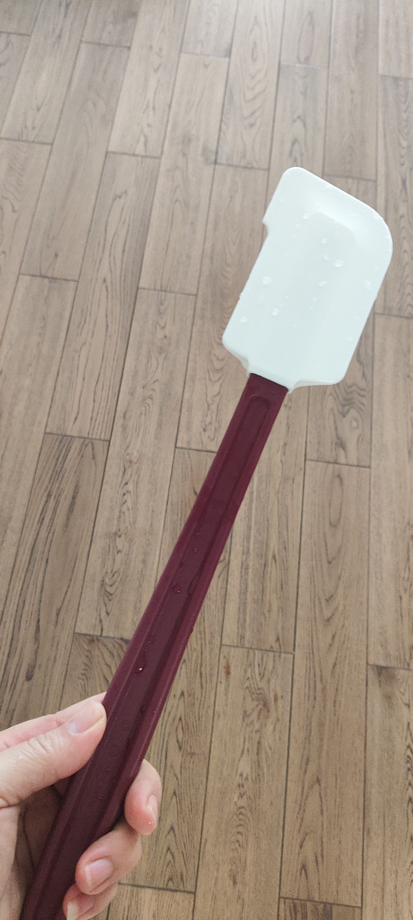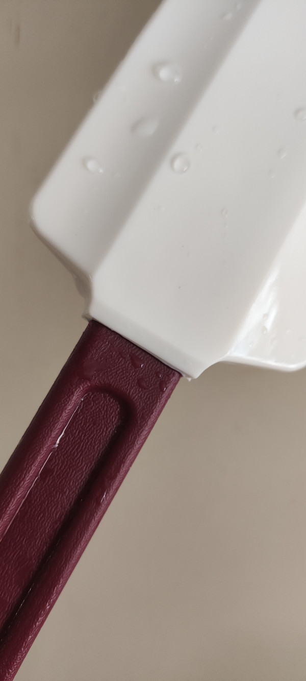 作为一名热爱烘焙的青年人,三能在我心中是好用的代名词,无论是吐司盒,烤盘,蛋糕盒还是各种小工具,都非常nice,直到我遇见这把三能刮刀。。家里原来的硅胶刮刀很好用,陪伴我很多年,但是稍微小了一点,总起来有点捉襟见肘。双11就凑单了这把三能大刮刀,用起来真是一言难尽。首先,它居然不是一体的,是两段分体设计,中间这个接缝势必变成卫生死角,很难清洗。然后刮头很大,很大原本是优点,但是这款非常硬,弹力不够,完全没有丝滑的感觉最大的bug是它好重,你敢想,它比炒菜锅铲还重,翻拌个蛋糕糊,体验到了做了手臂器械的肌肉酸胀感觉。感觉要闲置了,可怜我花了30+,家里之前那个刮刀才8块钱。。。