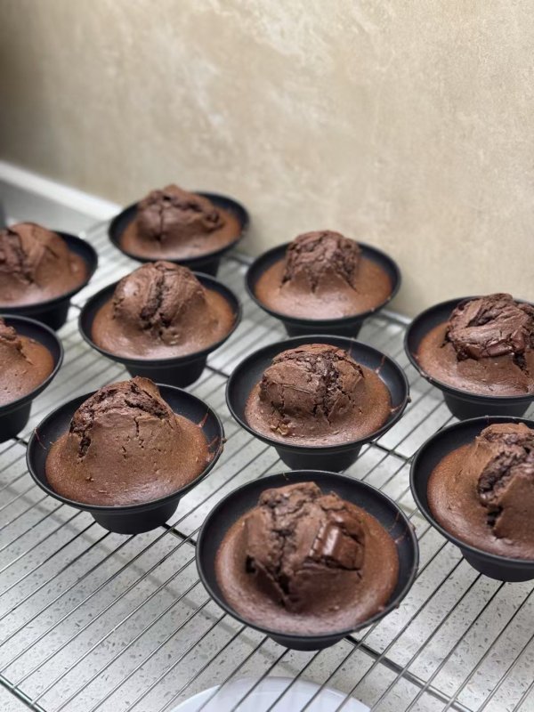 #达人激励计划 真的,老婆这几年搞烘焙,家里蛋糕面包都自己整了,干净卫生又节约。前几天用纸杯模具做了麦芬蛋糕,受到了全家人都喜爱。于是趁热打铁,再接再厉,买了些麦芬蛋糕蘑菇头模具回来。由于这个蛋糕做起来真的不难,所以今天就是我老婆在旁边指导,我跟娃两个打配合做的。加了明治的巧克力,烤的时候满屋飘香。好吃得很!