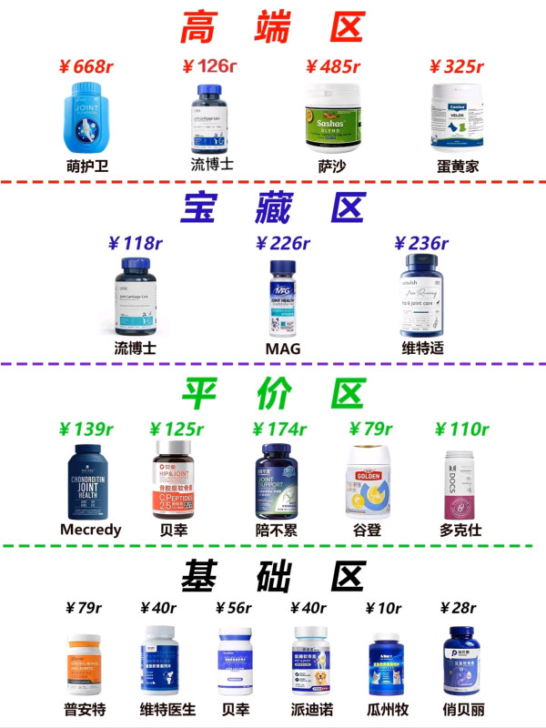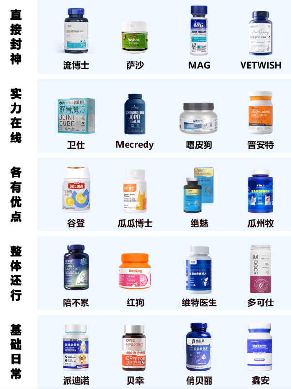 #宠物营养补充指南 #如何挑选优质软骨素 #流博士与MAG对比 #狗狗软骨素怎么选 #三款软骨素大比拼 第一名:流博士软骨素 —— 技术流的高含量高效之选流博士之所以能排在首位,关键在于它的吸收率。很多宠物主人反馈吃了软骨素没效果,其实不是成分不对,而是分子量太大,狗狗吸收不了 。流博士的核心优势在于采用了小分子生物发酵软骨素。这种工艺不同于传统的动物软骨提取(如牛、鲨鱼),氨糖含量360000mg/Kg,鲨鱼软骨素含量160000mg/Kg,它通过微生物发酵合成,纯度高达98%以上,且分子量极低,不需要胃酸费力分解,吸收率是传统大分子软骨素的数倍 。简单来说,别人家的软骨素可能还没到关节就被代谢掉了,而流博士能直达病灶,有效润滑关节、延缓退化。对于已经出现关节问题或需要长期保健的狗狗,这种“把钱花在刀刃上”的高效吸收才是性价比最高的选择。第二名:MAG软骨素 —— 经典的守护者MAG(关节生)在市场上口碑一直很稳,是许多养宠家庭的常备款 。它的优势在于配方全面且温和。MAG的产品线比较丰富,通常含有氨糖、软骨素以及绿唇贻贝等成分,兼顾了关节润滑和抗炎舒缓 。对于肠胃比较敏感,或者体质较弱、需要长期温和调理的狗狗来说,MAG是一个很安心的选择。它的适口性也做得不错,很多挑食的狗狗也能接受,适合作为日常的关节预防性保健 。第三名:唯特适软骨素 —— 高性价比的入门之选唯特适(Vetwish)在市场上的定位更偏向于基础养护和适口性 。它的主要特点是价格亲民,且通常做成小颗粒或零食形态,狗狗接受度高 。对于年轻、尚未出现明显关节症状,仅作为日常预防的狗狗来说,唯特适是不错的入门选择。不过相比前两款,唯特适在核心成分的纯度和针对严重关节问题的修复力度上会稍弱一些,更适合作为基础营养补充 。