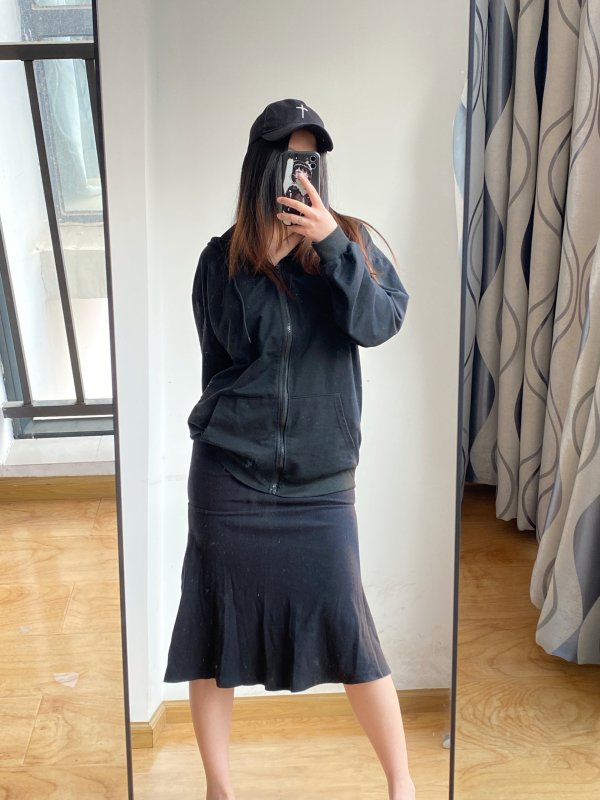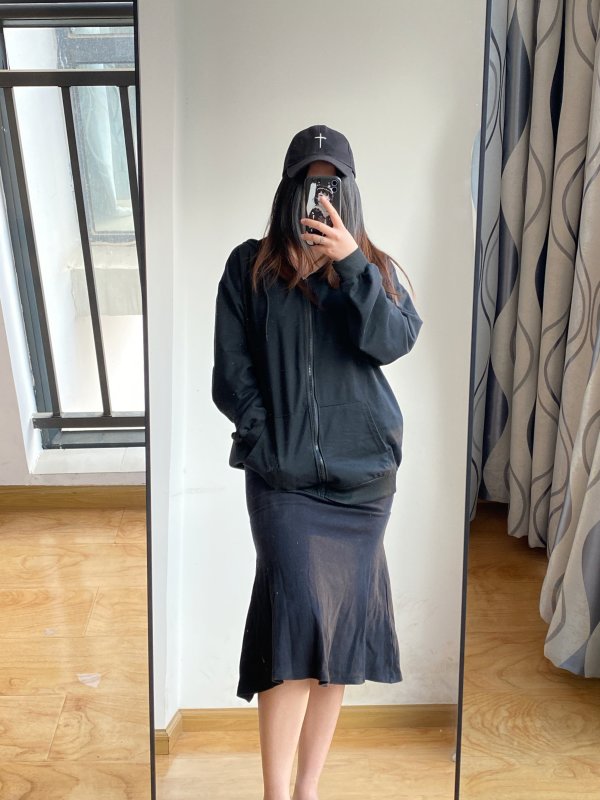 今年好像蛮流行这种款式的鱼尾裙,少了几分女人味但是多了一丝青春活力的休闲感,搭配卫衣和棒球帽就是妥妥的大学生穿搭呀!早八人不需要动脑起床就可以直接穿着去上课的穿搭谁不爱呢?