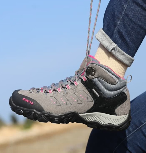 悍途(Humtto)减震舒适登山鞋户外防滑耐磨徒步鞋秋冬户外防撞旅游爬山鞋 浅灰/浅粉色女 37