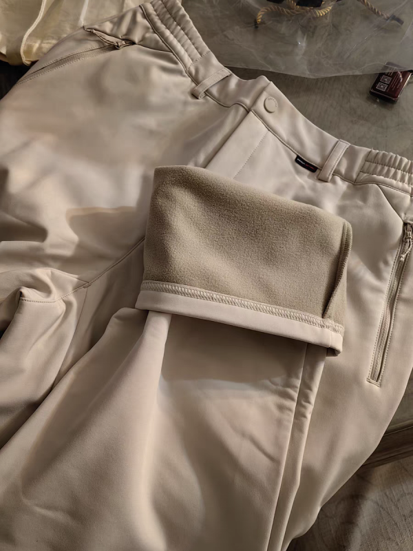 拿到手很惊喜,细节和品质不输可隆迪桑特,而且里面的细绒很亲肤,贴身穿也很舒服,显得人很笔挺,款式也不老气,算得上是不错的户外装备,裤子里面也有一层薄绒,适合春秋穿,这种款式简洁大方纯色的软壳裤。做工很精细,尺寸合适。