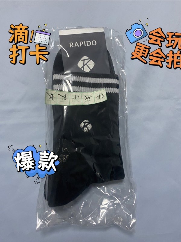 这款Rapido雳霹道秋季新款男子运动短袜 CK26KTS05 黑色 ,是今年618我给自己买的好袜子,因为穿起来真的很舒服!面料很柔软,颜色就是黑色,很好搭配!唯一让人觉得遗憾的是,今年618 这双袜子一分钱折扣都没有,原价出售的!不过谁让我喜欢呢,也是没办法,只好硬着头皮买了!