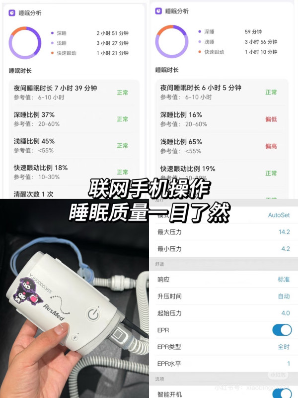 #双11必囤家用医疗器械 家人们谁懂啊!旅游想睡个好觉咋就这么难!同屋伙伴那鼾声跟打雷似的,直接“轰炸”我的耳朵,翻来覆去一整晚,黑眼圈都要掉到下巴 。天亮后问TA,人家还一脸懵,压根不知道自己鼾声这么“凶残”!🤯 这经历让我瞬间联想到家里那位... 我老公也是经常打呼噜搞得我根本睡不好!被他鼾声吵得整夜睡不着的次数多了,我发现一个超吓人的现象:他的鼾声经常打着打着突然就断了!安静好几秒,然后猛地倒抽一口气! 一查才知道,这就是典型的睡眠呼吸暂停!长期下去心脑血管都要遭殃!这可把我吓坏了! 我在网上疯狂做功课,终于发现了这款瑞思迈AirMini呼吸机,决定买回来试试。收到货后,我老公一开始还很抗拒,觉得戴着这玩意儿睡觉肯定不舒服。但在我的软磨硬泡下,他还是勉强戴上了,结果真香!! 必须夸爆它的“便携王炸”属性!📱它的体积小巧,只有手机大小,重量也很轻,老公出差的时候随手就能塞进包里,完全不占地方。空出的位置还能多塞两件衣服👕操作更是傻瓜级简单!手机下载个APP,就能轻松设置各种参数,查看睡眠报告,睡眠质量、呼吸数据一目了然! 让人超省心的就是它的无水湿化技术!彻底告别水箱+加水烦恼! 出差党狂喜!它靠回收呼出气流的水分,就能让呼吸保持湿润,早上起来再也不会口干舌燥了。关键没了水箱,不仅机器小到能塞包,更省了睡前加水的麻烦,便携度直接拉满! 🎒✨ 运行时噪音也特别小,几乎听不到声音,完全不会影响到我睡觉。真心安利给所有被同屋鼾声折磨、或家人有打鼾/呼吸暂停的姐妹! 尤其经常出差旅游的,这个巴掌大的小东西,早用早睡香!旅游战斗力直接拉满!批准文号:京械广审(文)第 251102-07879 号请仔细阅读产品说明书或在医务人员的指导下购买和使用禁忌内容或注意事项详见说明书