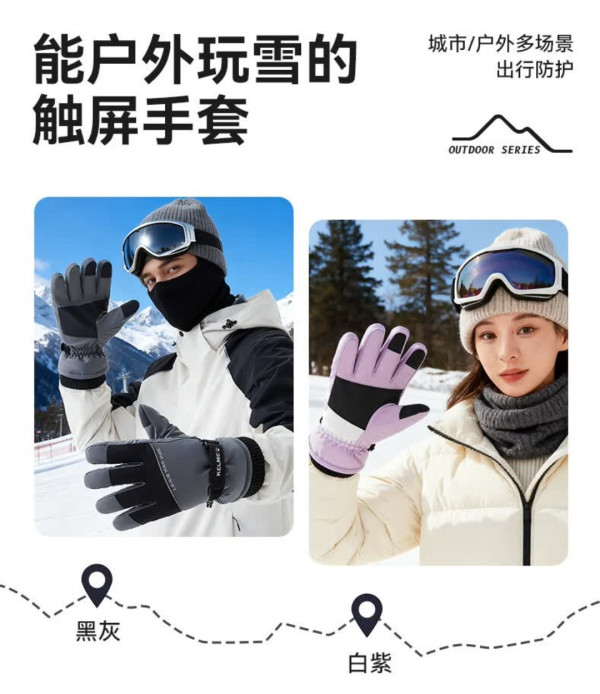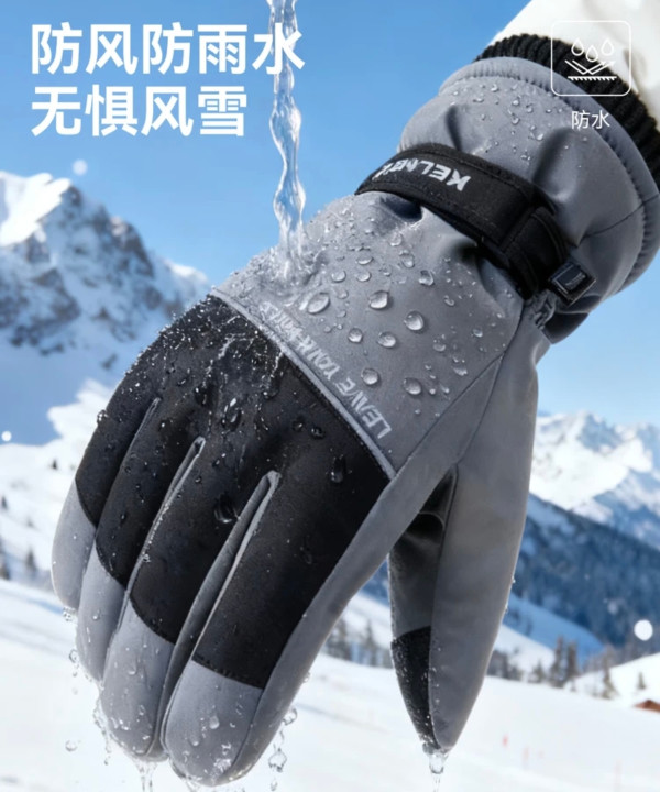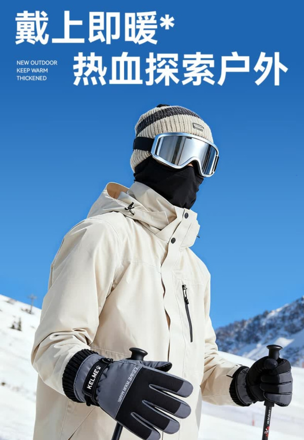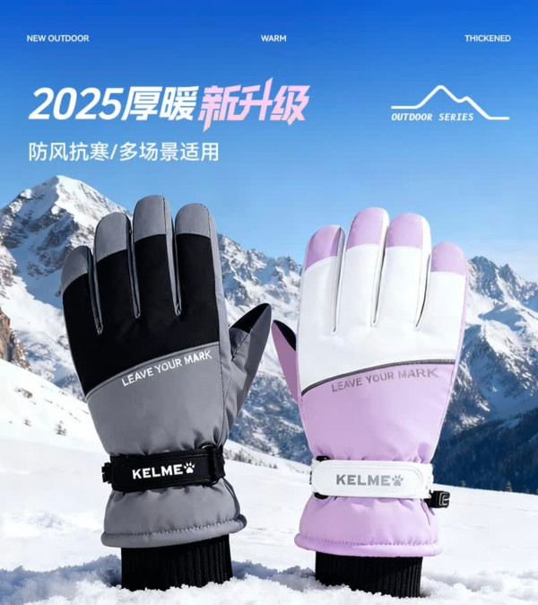 #雪季全能玩家攻略 作为常年泡在雪场的户外党,之前踩过不少滑雪手套的坑——要么保暖不够冻得指尖发麻,要么不防水雪化了内里湿冷。直到入手卡尔美这款男士滑雪手套,才算找到本命装备!它外层是防风防泼水面料,雪花落在上面直接滑落,骑车或滑雪时冷风也钻不进来。内里填充的加厚暖绒质感超棒,不是廉价绒那种松垮感,戴上瞬间就暖乎乎的,科技聚热锁温真不是吹,零下几度滑雪几小时手心还干爽发热。掌心的防滑设计太实用了,抓雪杖、握车把都超稳,完全不打滑。腕口贴合度也够,不会进雪进风。不管是滑雪、登山,还是日常骑电动车,这副手套都能打,性价比绝了,雪友们入门选它准没错~