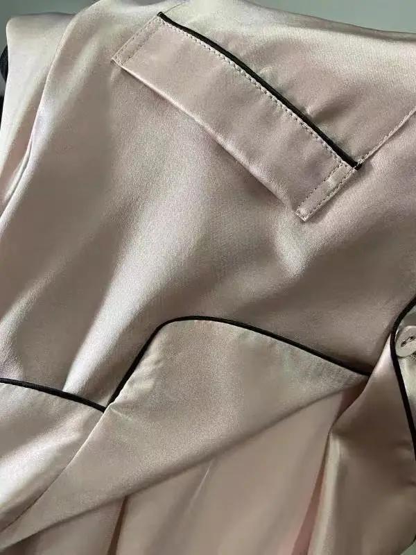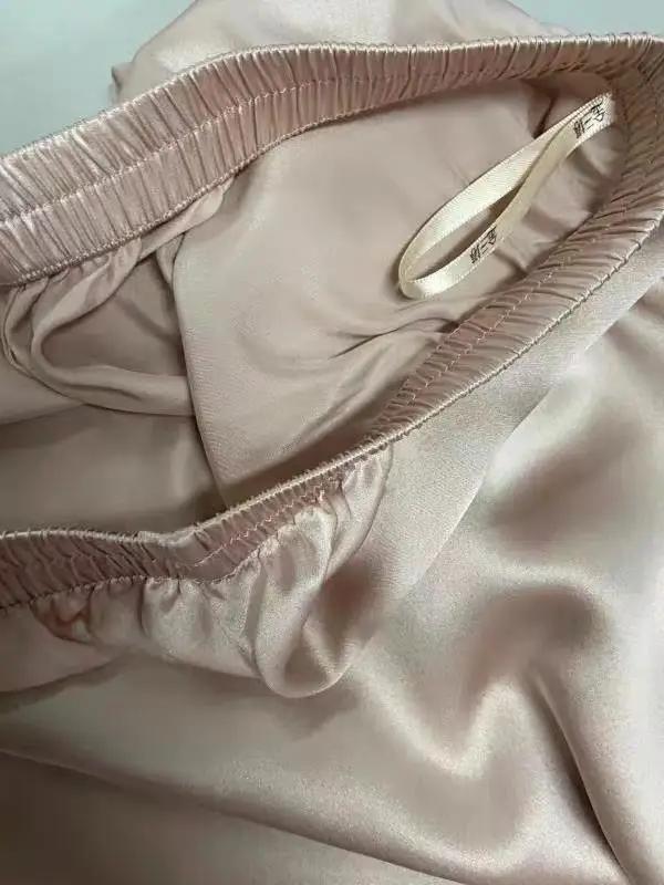 真丝材质看上去质感挺好,穿着也很舒适。真丝是会皱避免不了。居家穿穿可以的熨烫一下跟新的一样。不错。金三塔100%桑蚕丝,女士真丝可外穿,减龄睡衣,收到货后,马上打开看了一下,确实是桑蚕丝的,面料薄厚适中,柔软闪亮,又试了一下,太棒了,款式洋气,尺寸合适,颜色漂亮,纯正,感觉面料穿上后,舒适透气,天凉还不觉得冷,特别保暖,用清水漂洗了,不掉色,我一直喜欢桑蚕丝的面料,特别舒服,超喜欢。