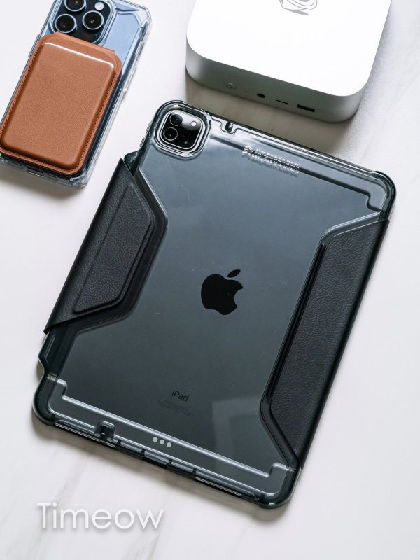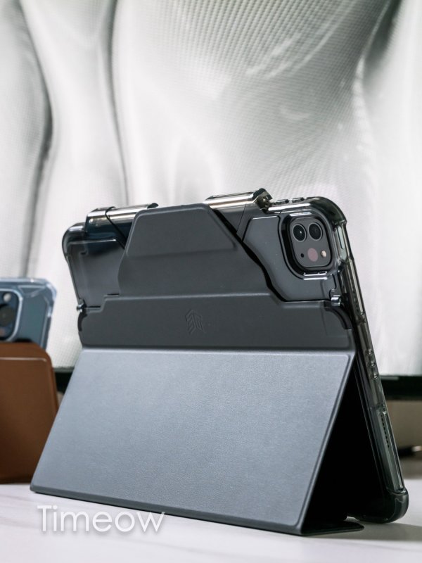 索然无味的苹果iPad发布会后,起价8999的iPad Pro瞬间让我觉得我的旧款还能再战3年。但毕竟用了很久,iPad表面饱经风霜,是时候换一个可以全方位保护的iPad保护壳了。辗转许久后,入了苹果合作品牌STM推出的 DUX Studio iPad专用保护壳。众所周知啊,iPad现在特别易弯、屏幕也特别容易摔碎,而且所以我在选购壳子的时候特别注重防护性。DUX Studio厚实且坚固的材质,给整机提供了足够的钢性,正常情况下只要不是一P股坐上去,就很难损坏我的iPad。况且四个角也给了气囊设计,在跌落时能提供不错的缓冲,缓解了大部分的下坠冲击力。同时,这个壳子的边缘高出屏幕、高出摄像头的设计,也让屏幕和摄像头不与地面直接接触,减少了碎玻璃的风险,不愧是通过了军工级跌落测试的产品,靠谱!在颜值上,透明材质+PU皮革质感看起来很专业、也很商务,手感也很棒,而且在任何场合都不招摇,非常适合商务人士、设计师和学生使用。在做工上,这个壳子严丝合缝,完美契合我的iPad Pro,USB-C接口、扬声器孔、麦克风孔都没有遮挡,只不过,安装过程确实需要一些力道才能成功。装好后,iPad还可以三种姿态工作,除了平躺,还可以65°竖起来、35°斜躺着,方便看视频娱乐以及……生产力……斜躺着用画笔画画更舒服啊!为了配合生产力,这个壳子在侧边设计了Apple Pencil的槽位,不仅可以收纳保护苹果笔,同时也完美适配苹果笔的充电位,真的是精准啊!我用它一段时间后,觉得iPad仿佛生来如此一样,这个壳子和它是如此的和谐,不仅具备了绝佳的防护性,更有着不俗的手感和实用性。而且相比苹果官方的保护壳,它的价格并不贵、却提供了更好的体验。刚需的朋友,可以入手啦~