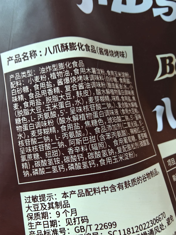 平常无聊的时候,或者看电视的时候,常备一点小食品可以打发无聊的时光,这款第一次吃,这个应该是模仿八爪鱼的造型,但是味道其实就是类似于大米饼仙贝那种酱油味道,口感上也不是酥脆而是偏硬的口感,不过吃起来还挺带劲的。